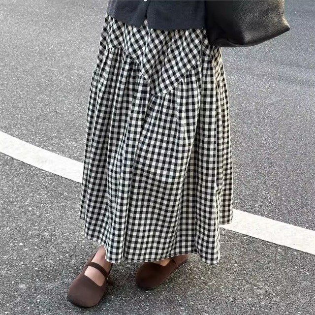 ギンガムチェック 切り替えスカート 2col Y 260020