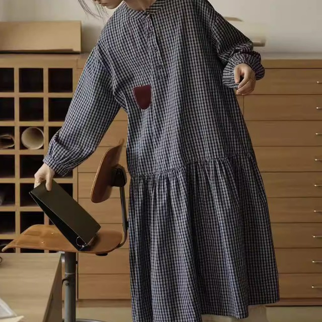 チェック柄長袖 シャツワンピース Y 260013