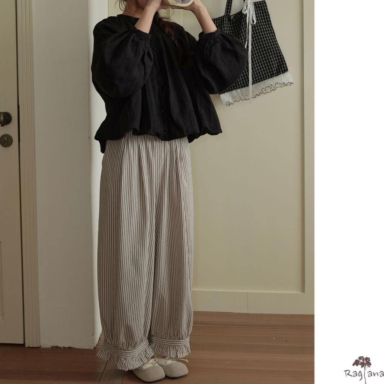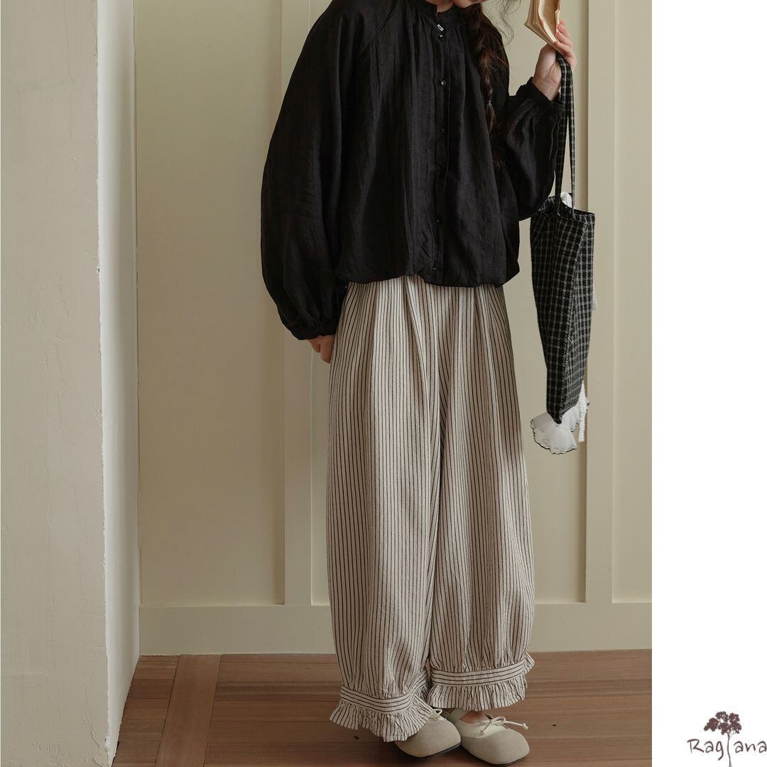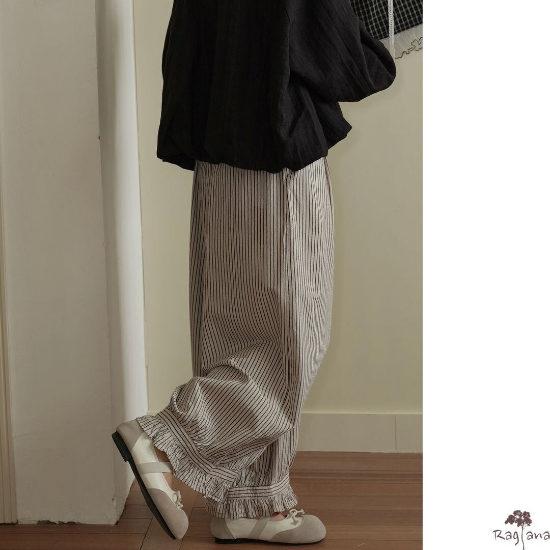 裾のフリルが可愛らしいストライプ柄パンツです。