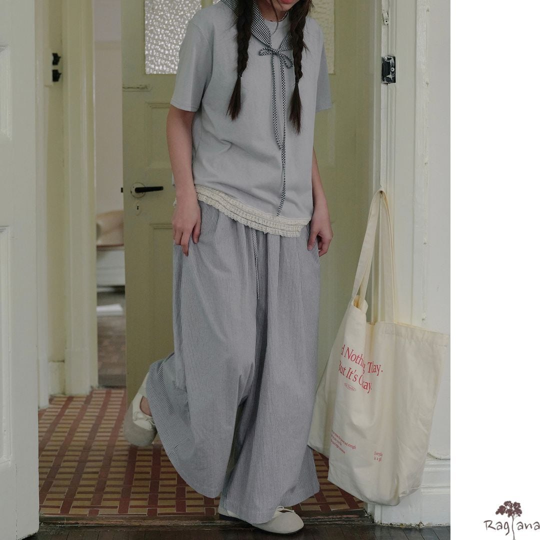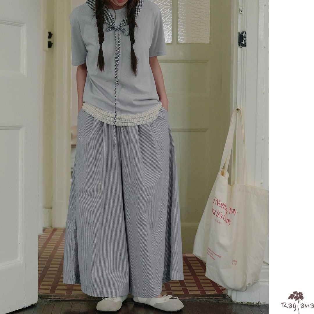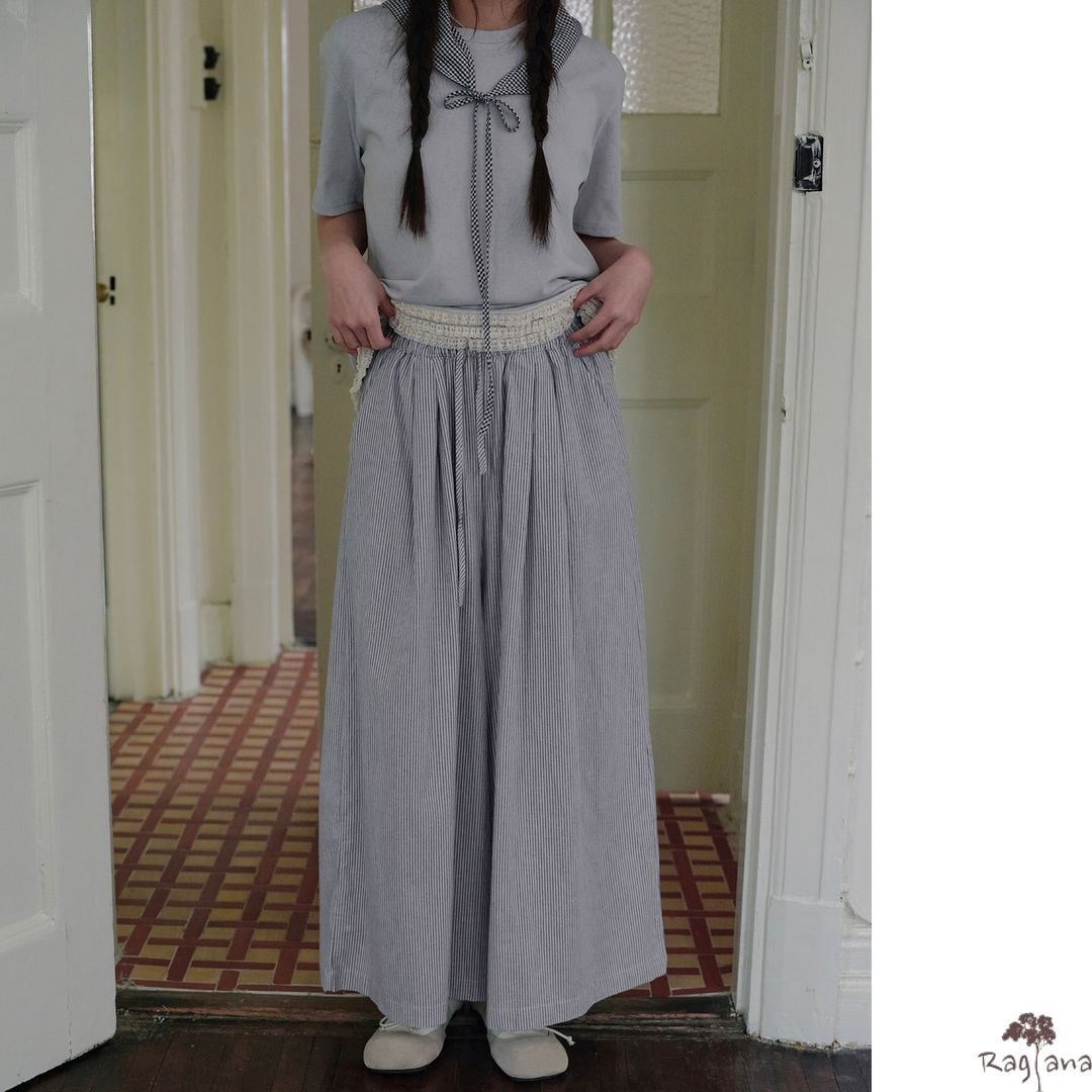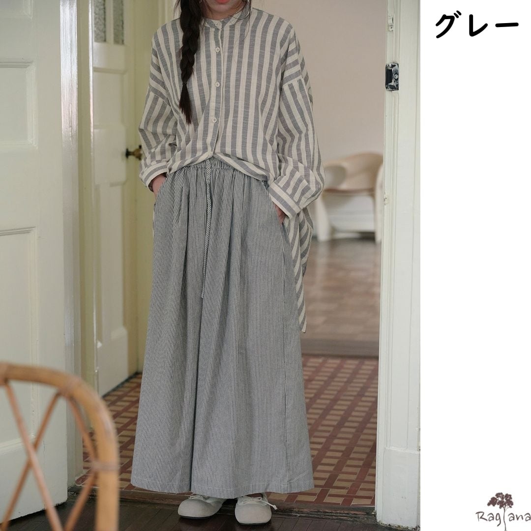 ストライプ柄 ワイドパンツ M 2col 250116