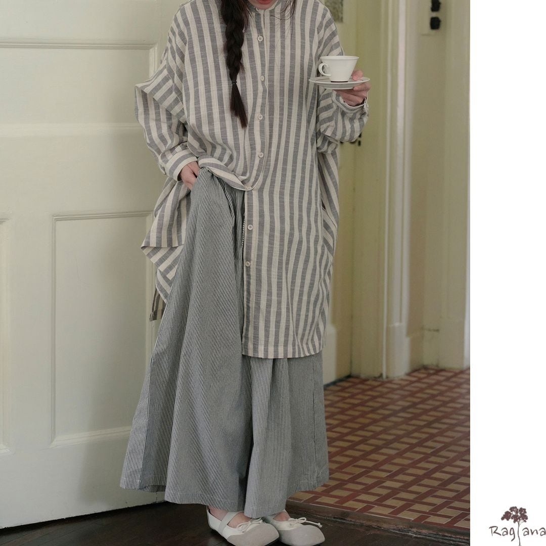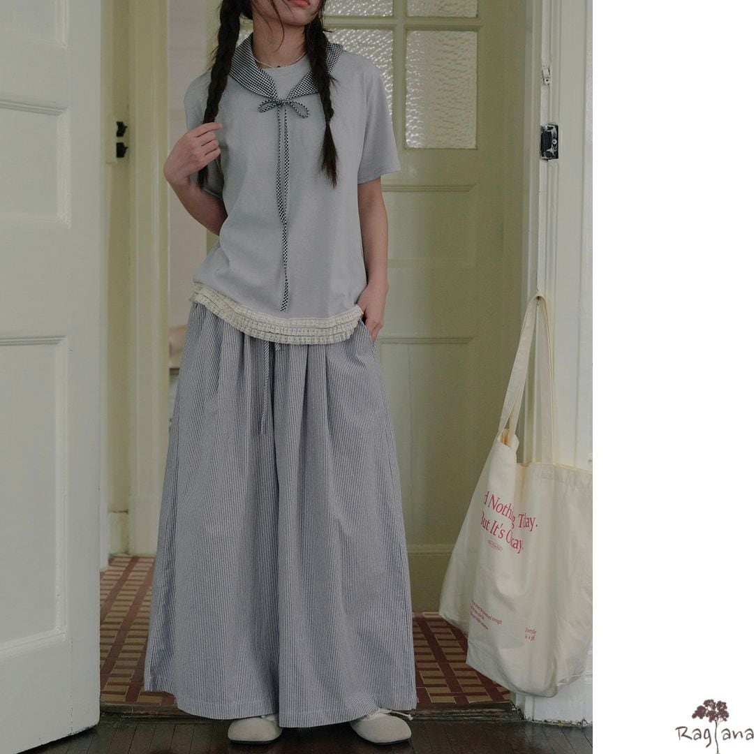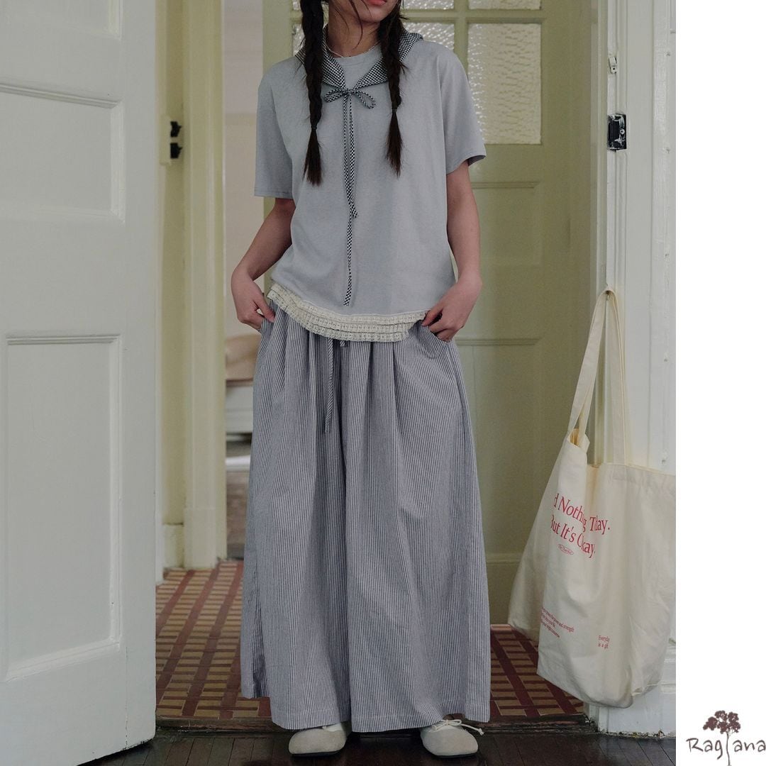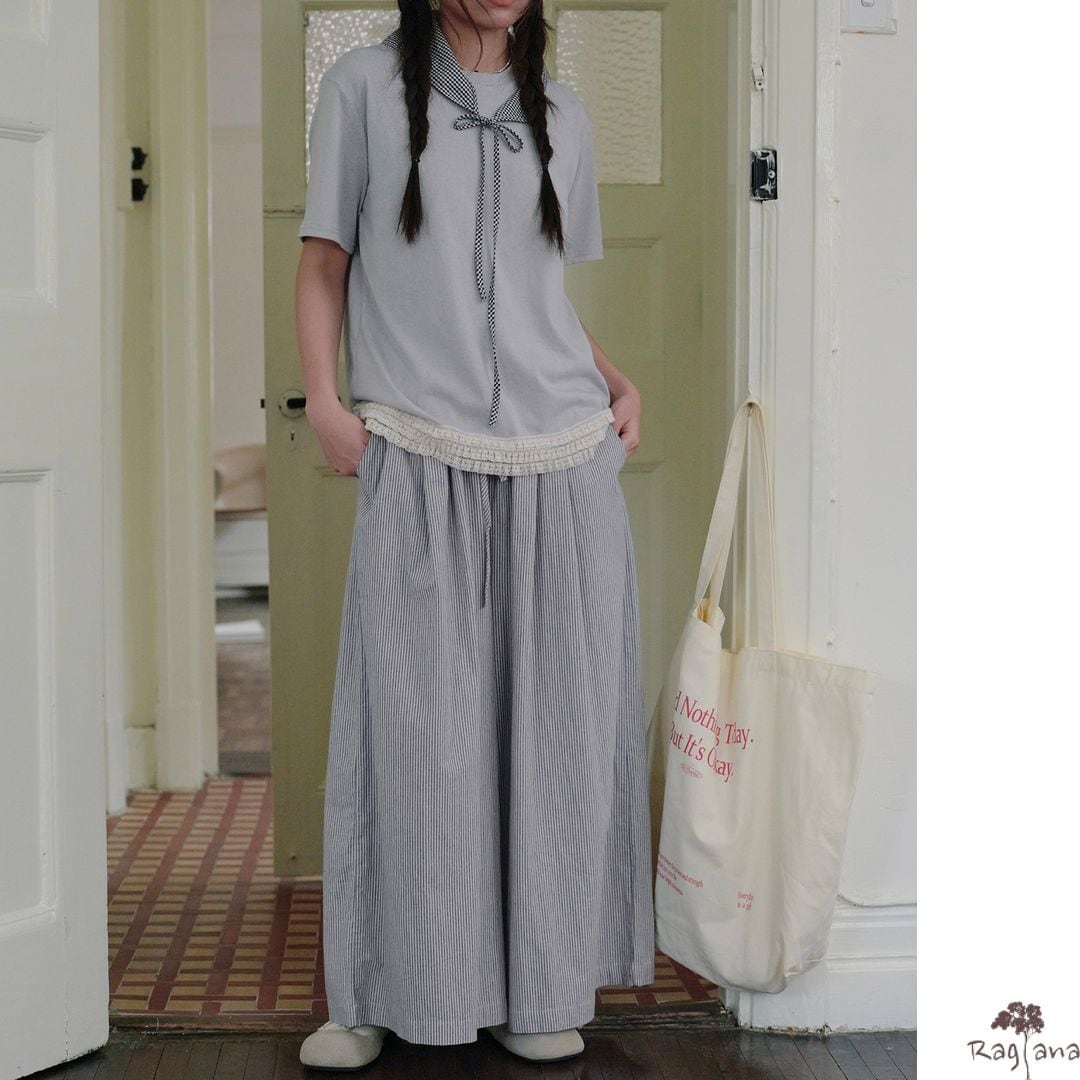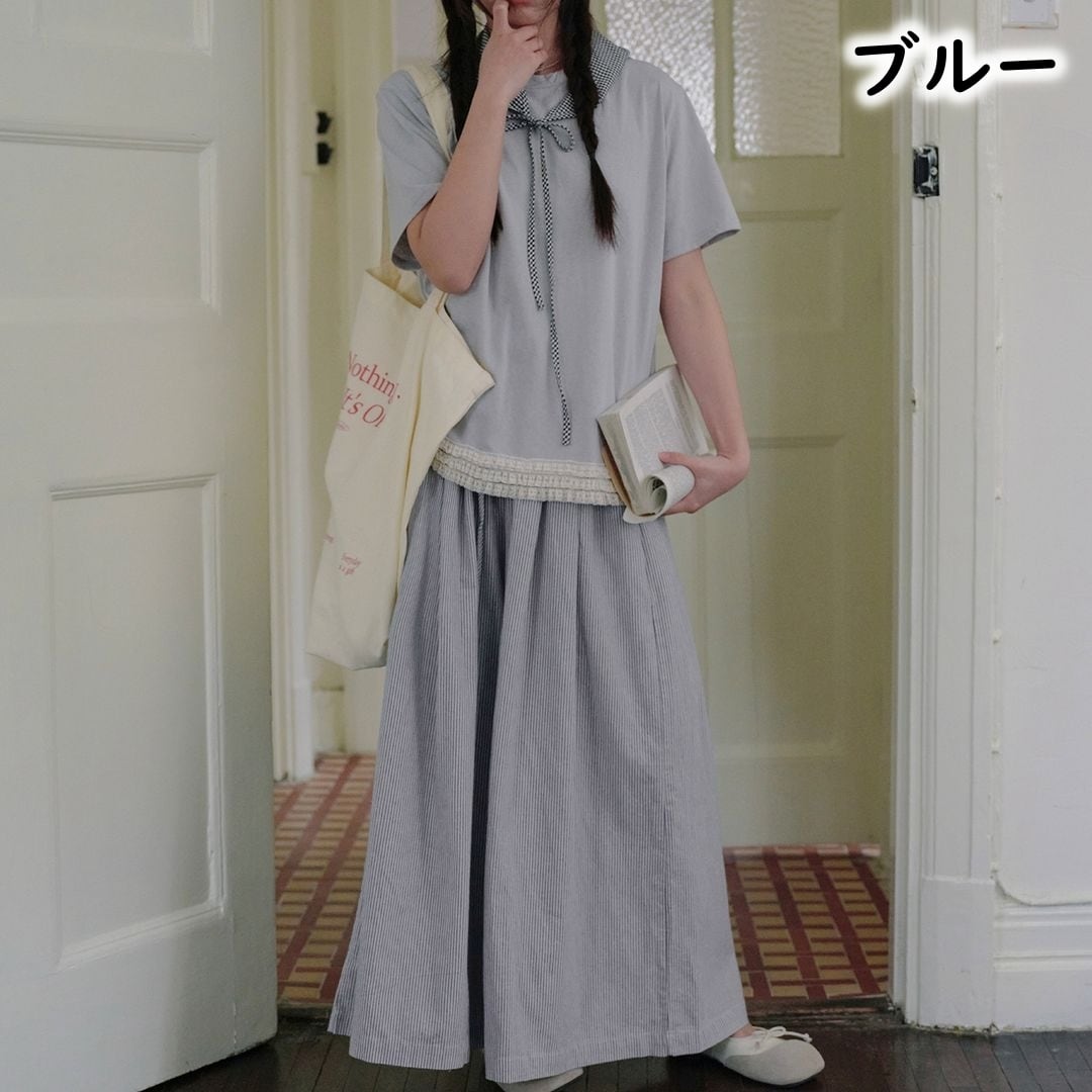 ストライプ柄 ワイドパンツ M 2col 250116