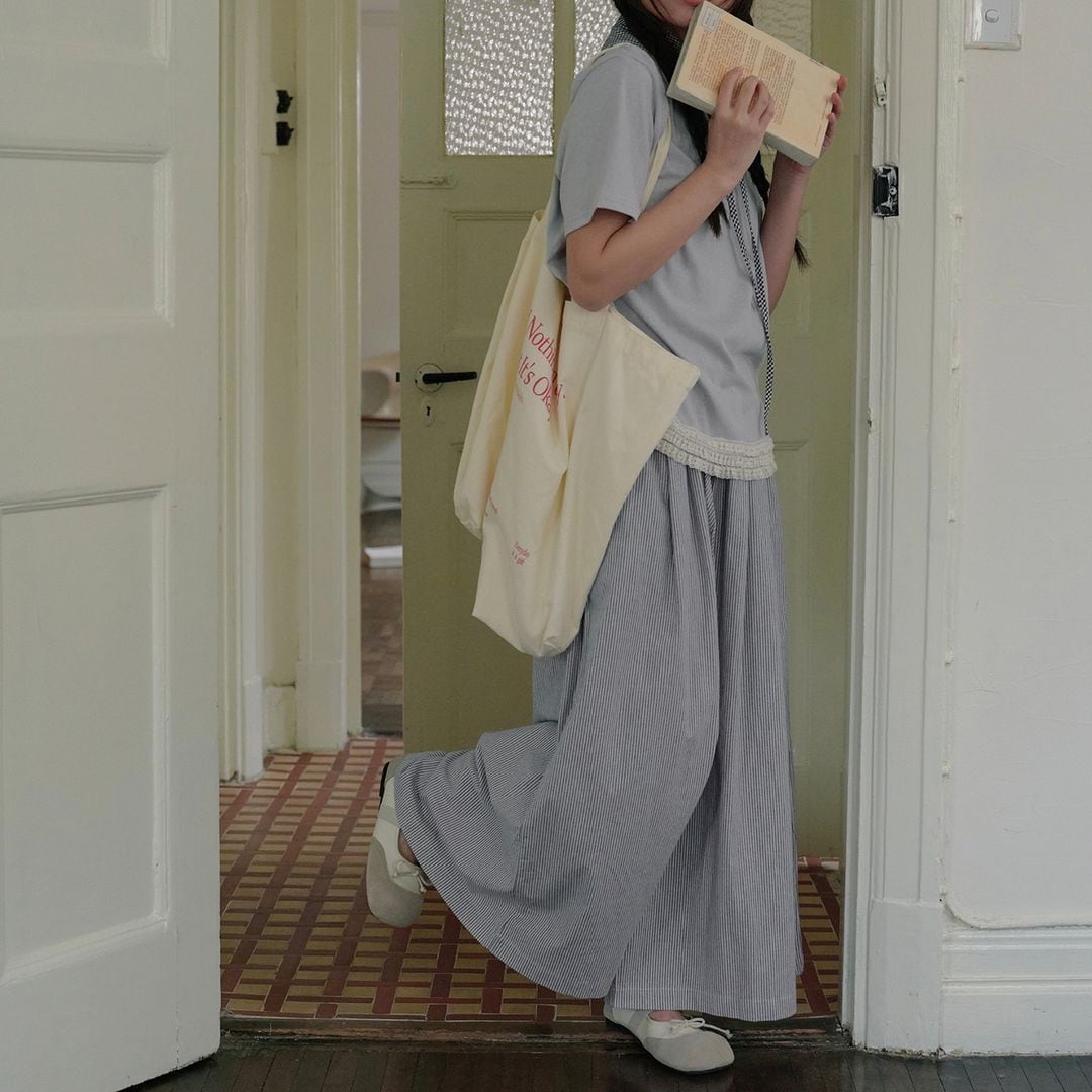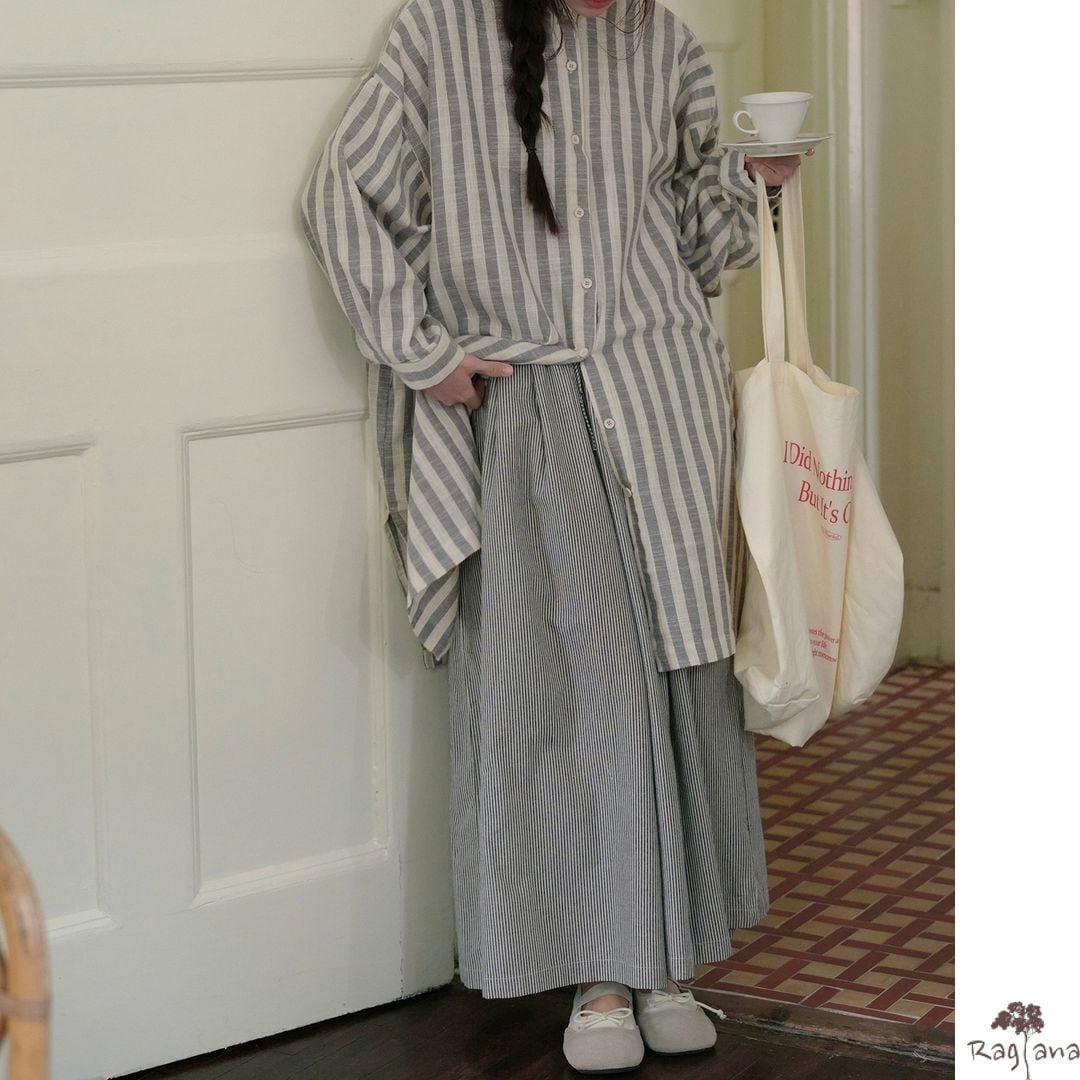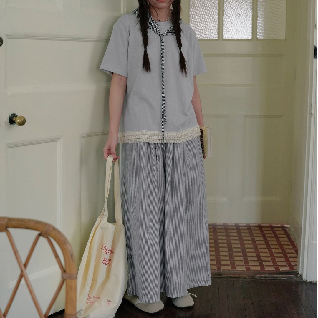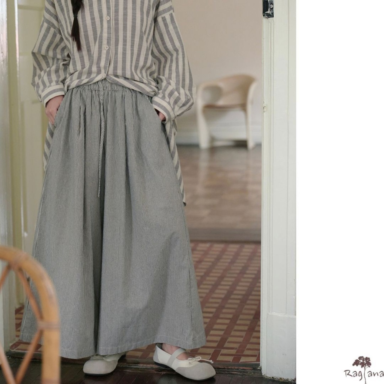 ストライプ柄 ワイドパンツ M 2col 250116