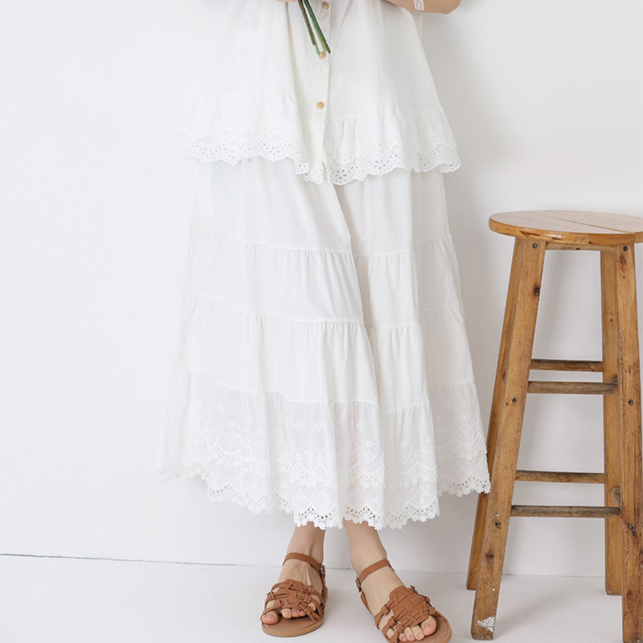 裾のレースが可愛らしいティアードスカートです。
