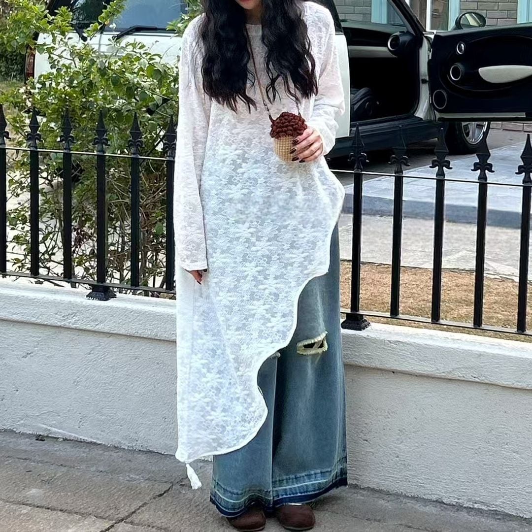 アシンメトリーな裾が可愛らしいレーストップスです。