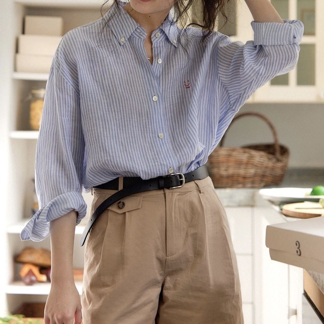刺繍がワンポイント入ったストライプ柄シャツです。
