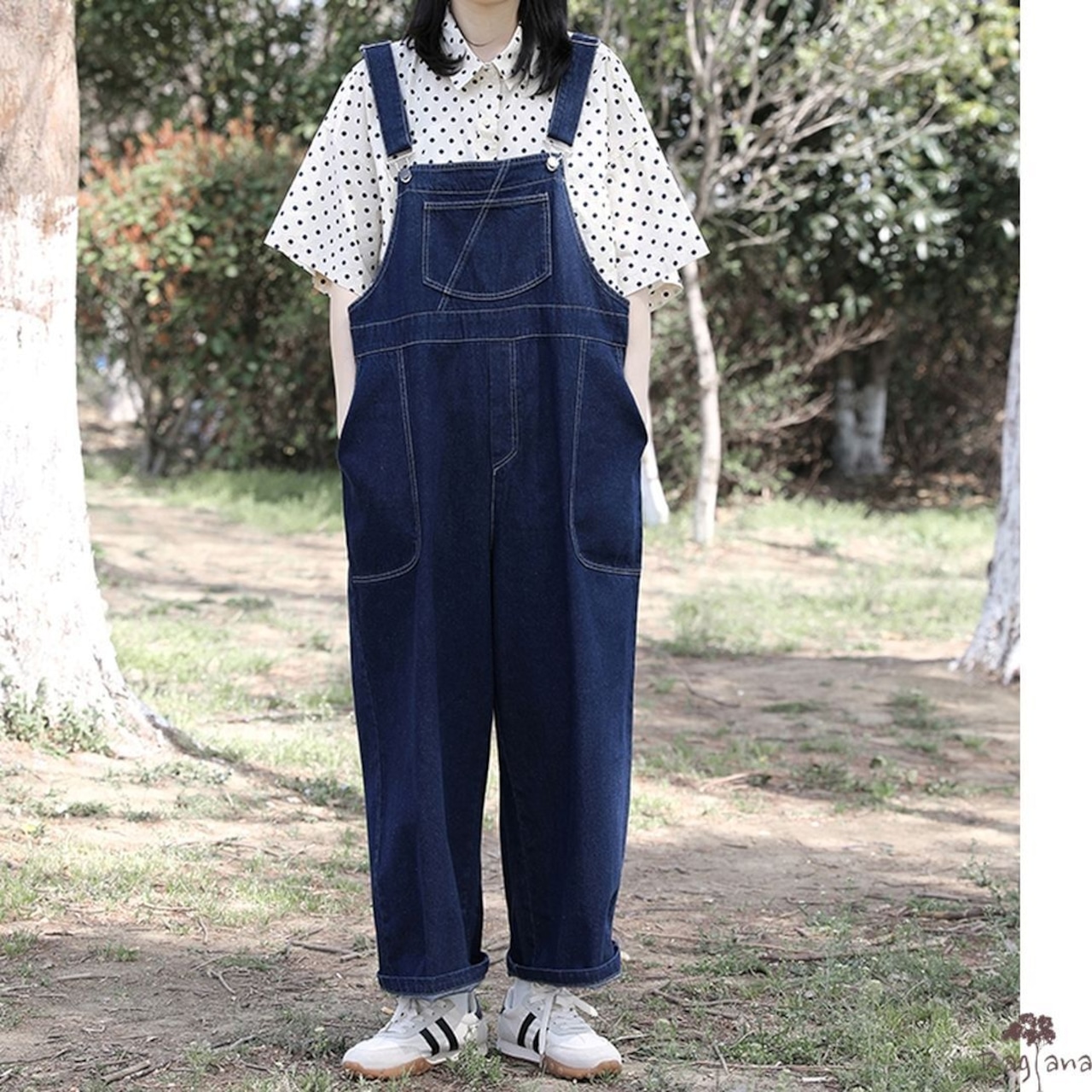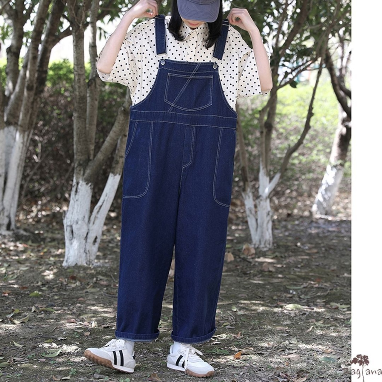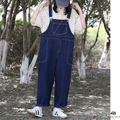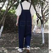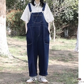 アシンメトリーなフロントステッチがワンポイントのオーバーオールです。
