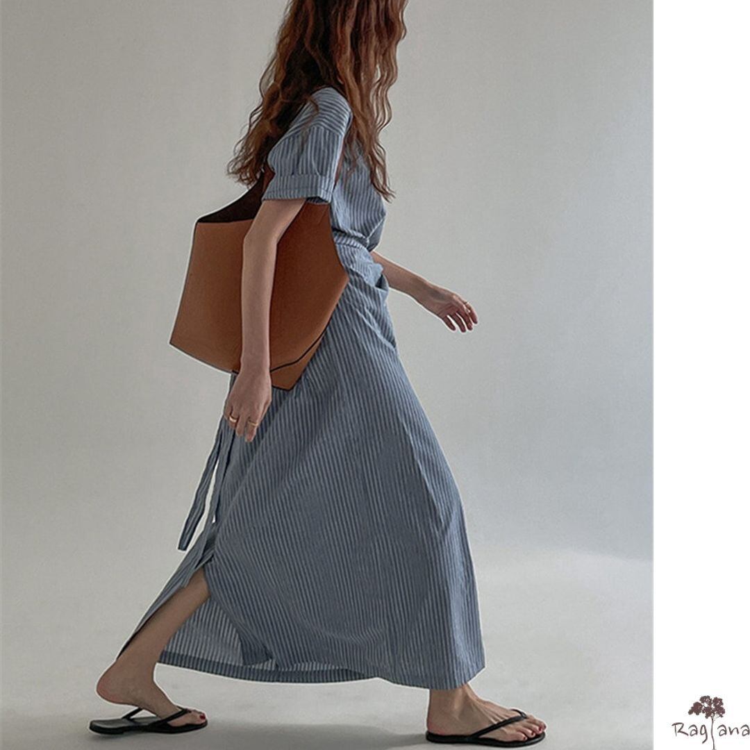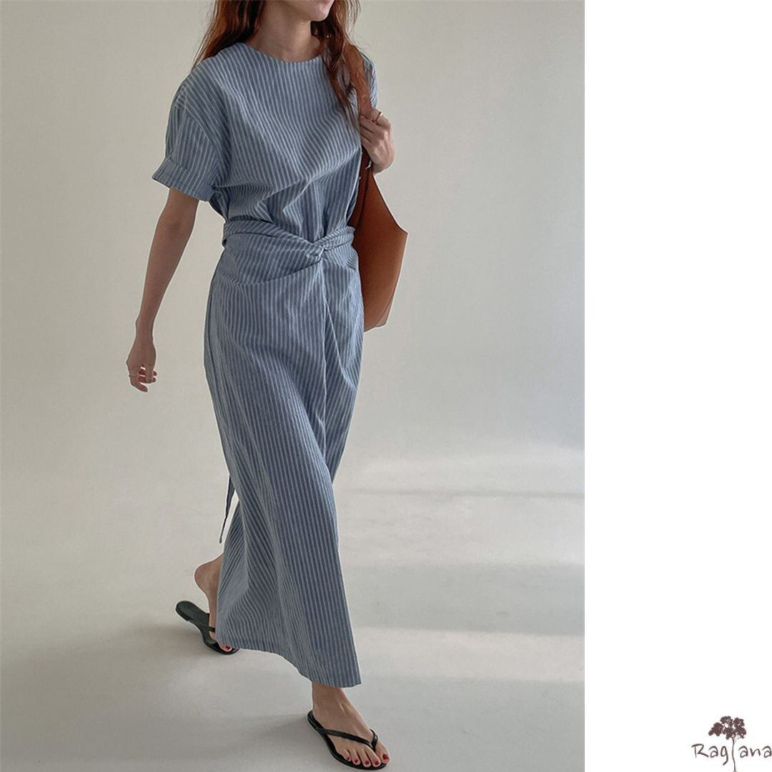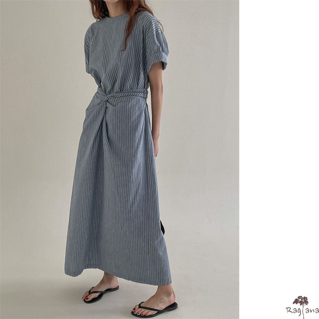 ウエストタイ ストライプ柄 ワンピース M 250279