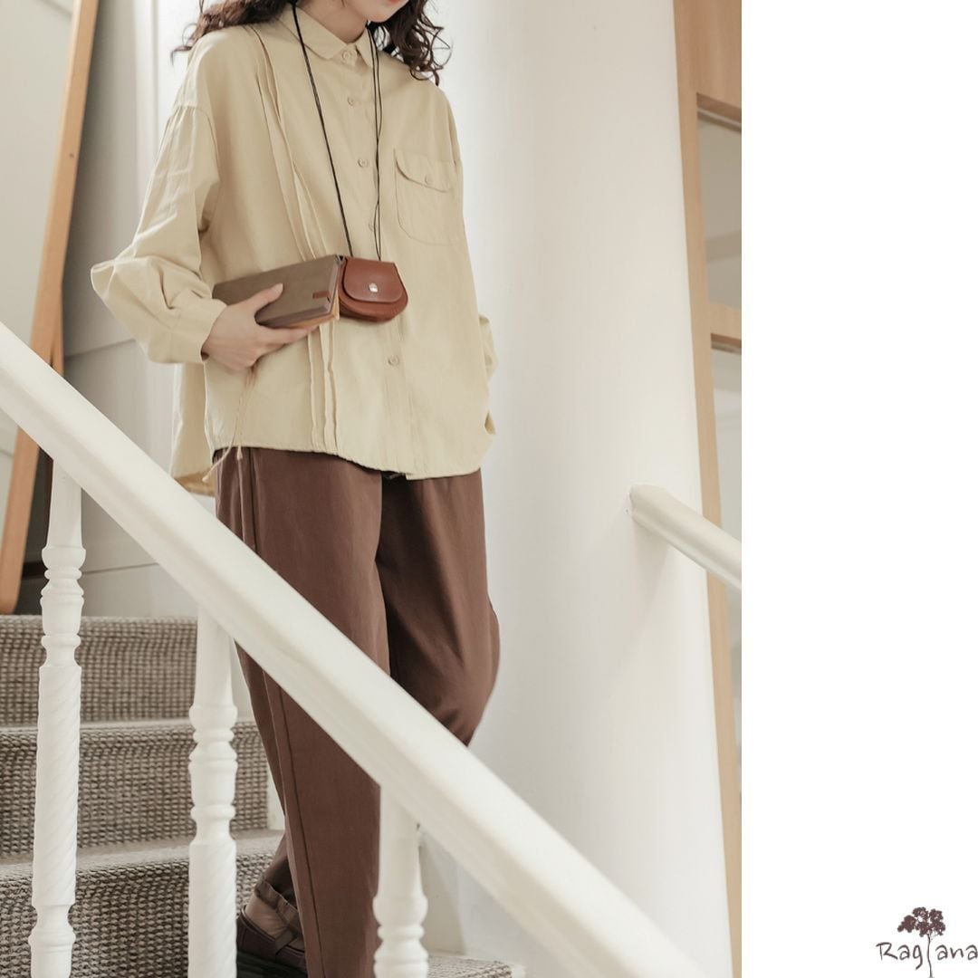 アシンメトリーなプリーツデザインがポイントのシャツです。