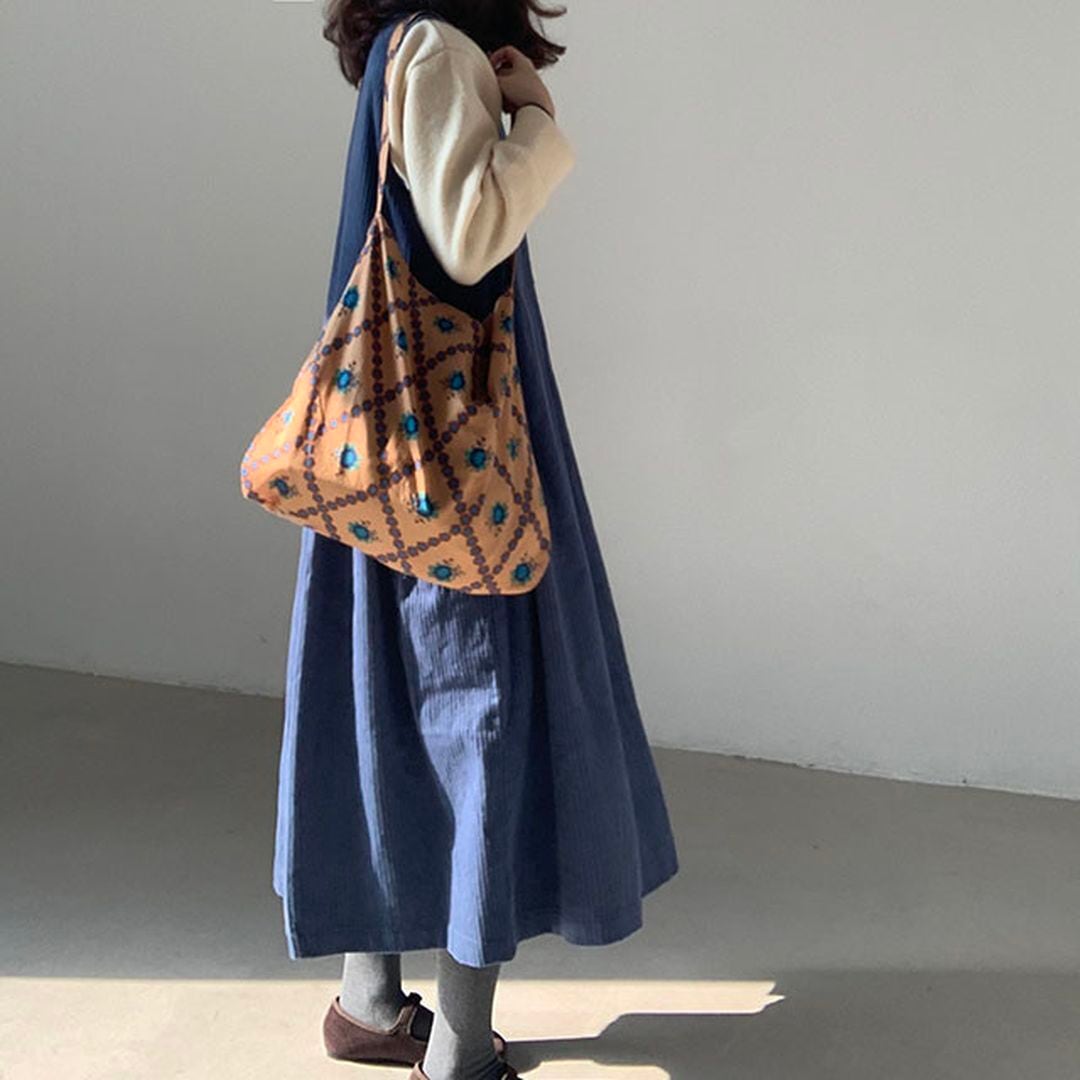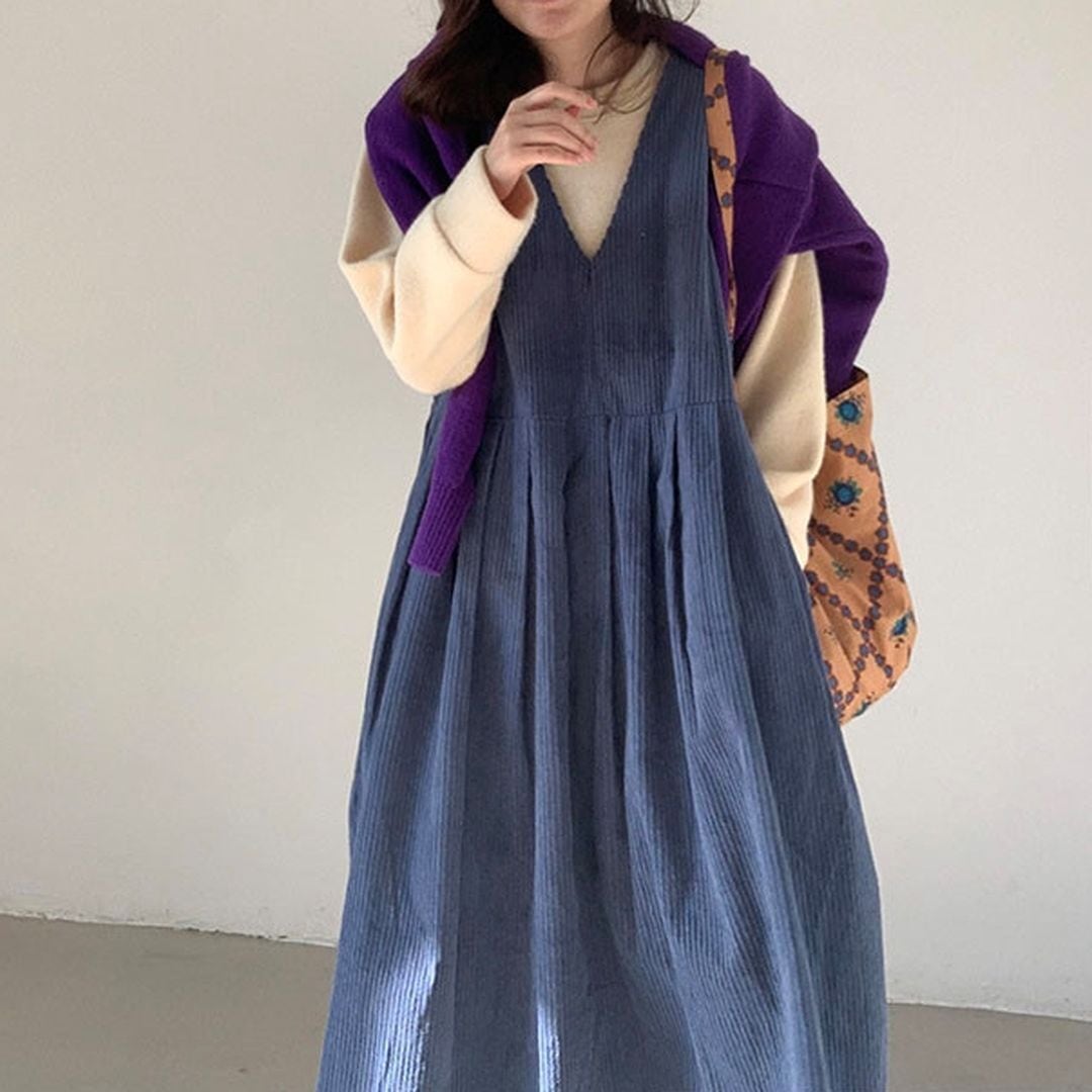 タック入りのコーデュロイジャンパースカートです。