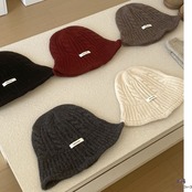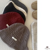 フロントにラベルの付いたニット帽です。