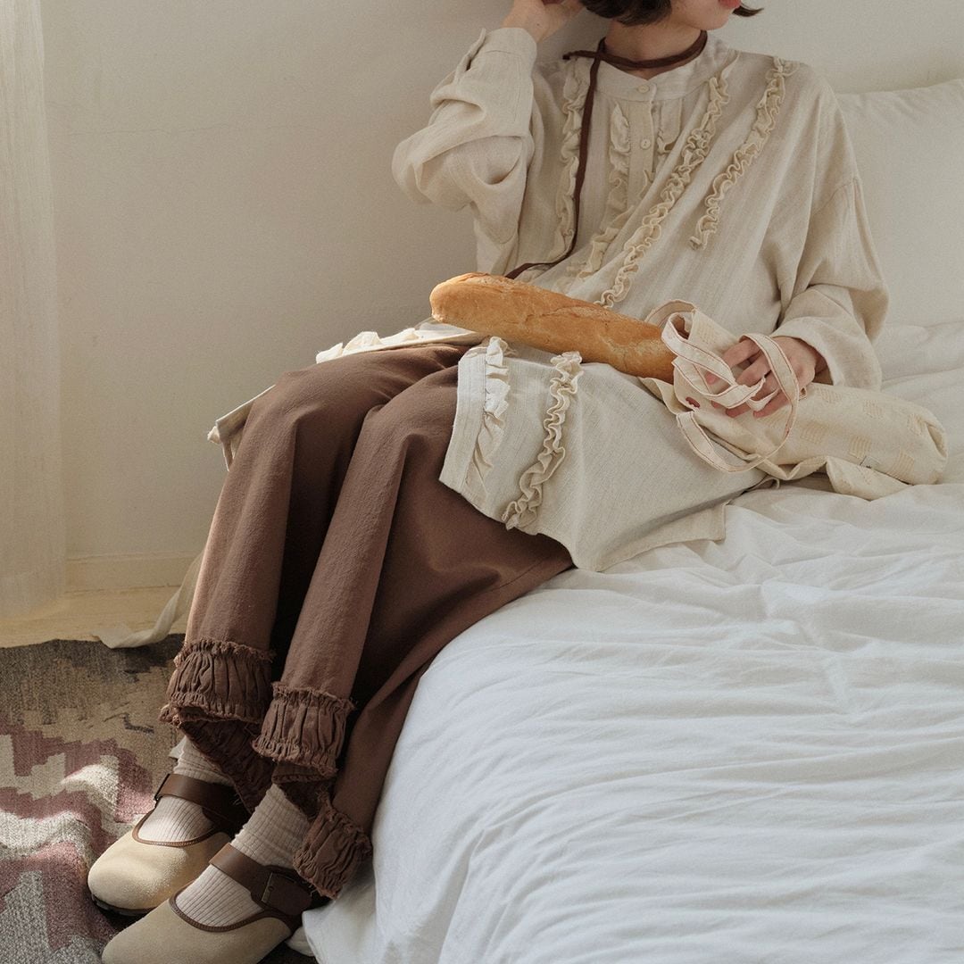 アシンメトリーなストラップデザインがポイントのブラウスです。