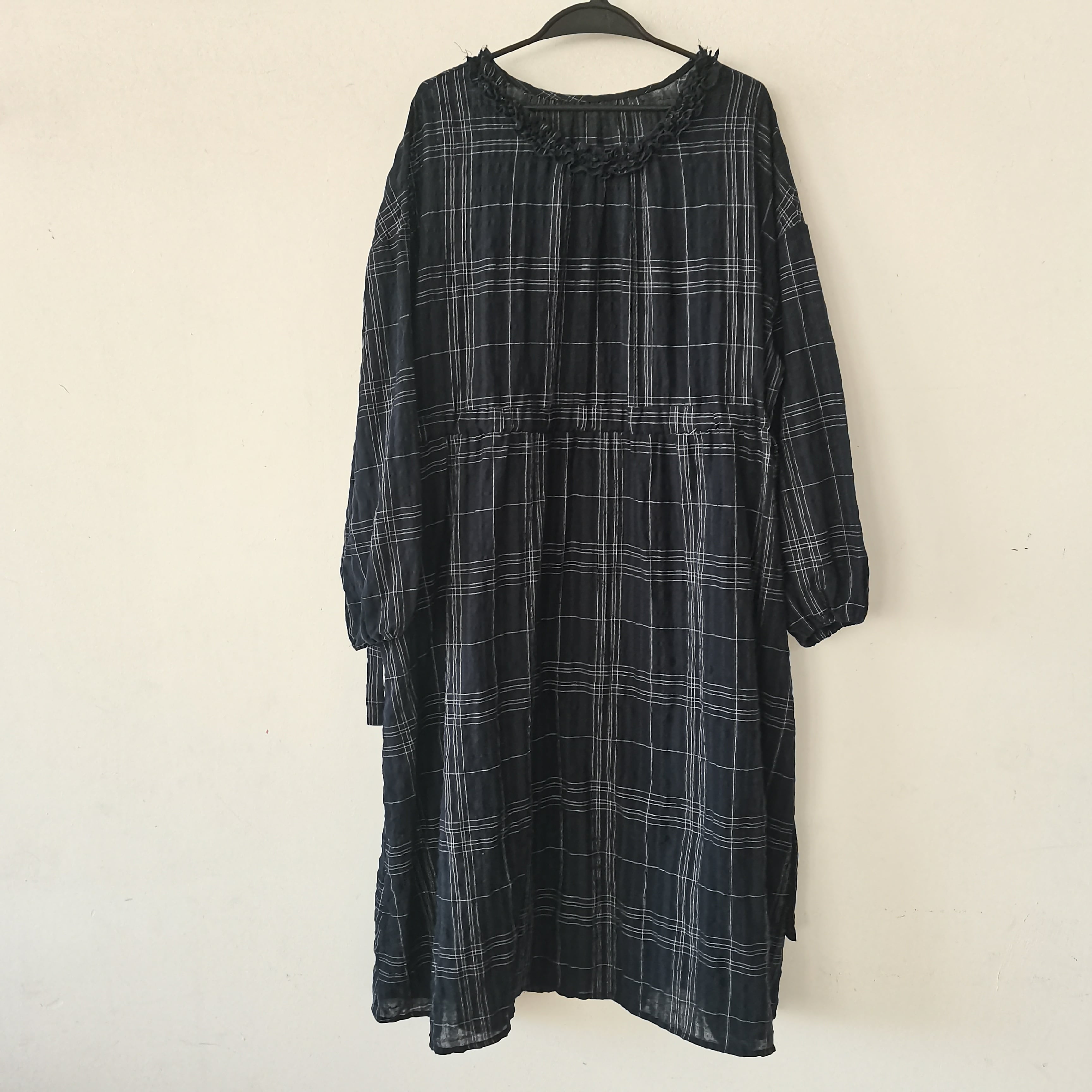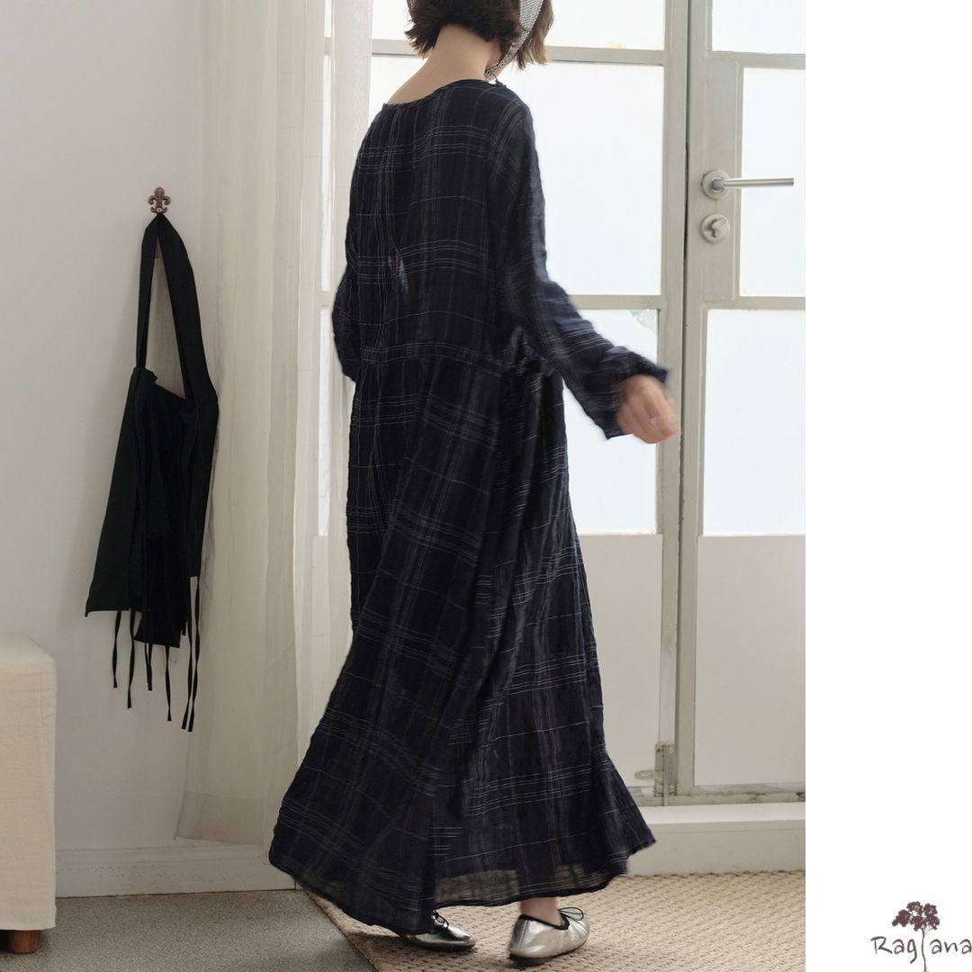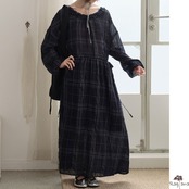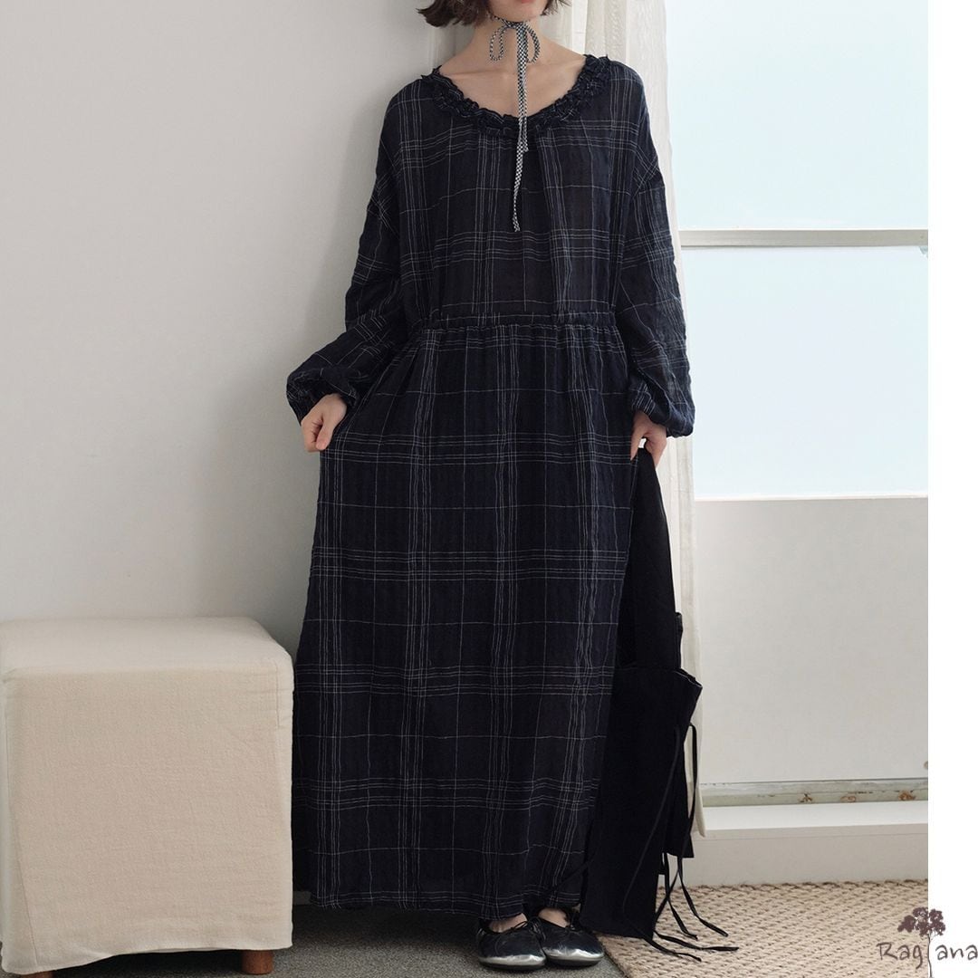 フリルのネックラインとカフスが可愛らしいワンピースです。