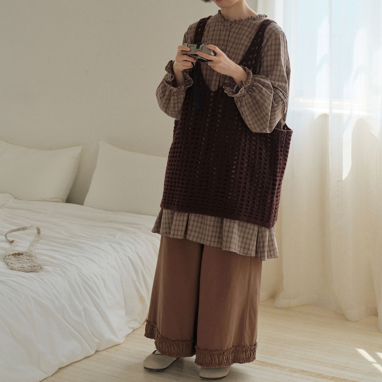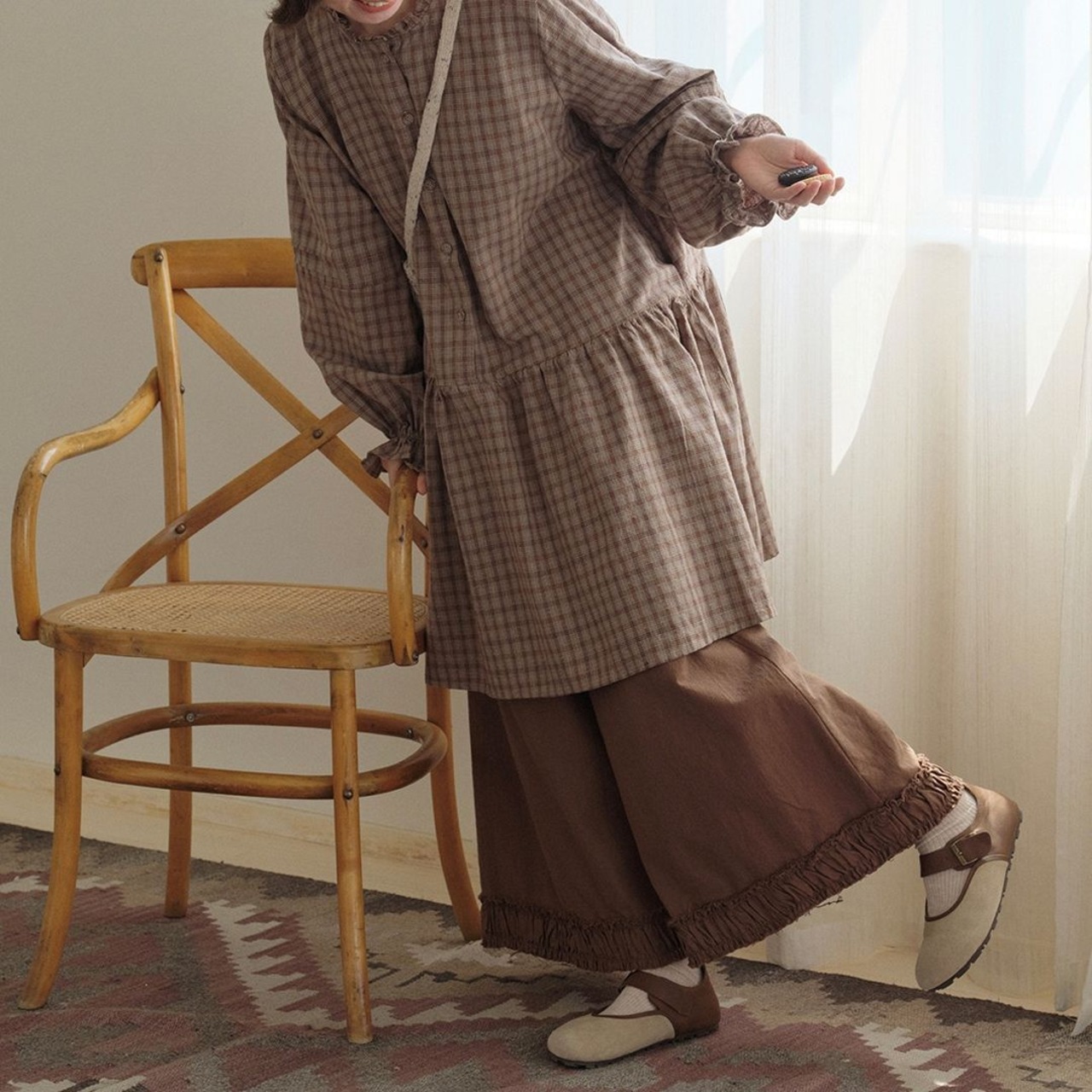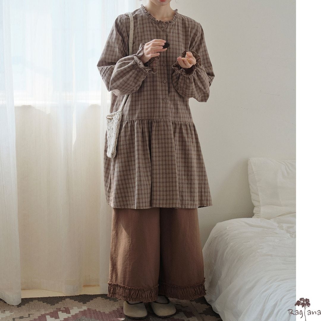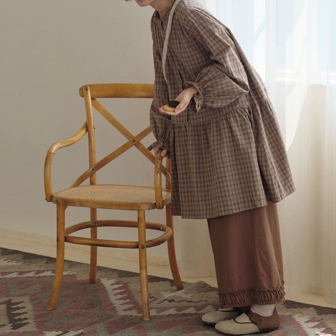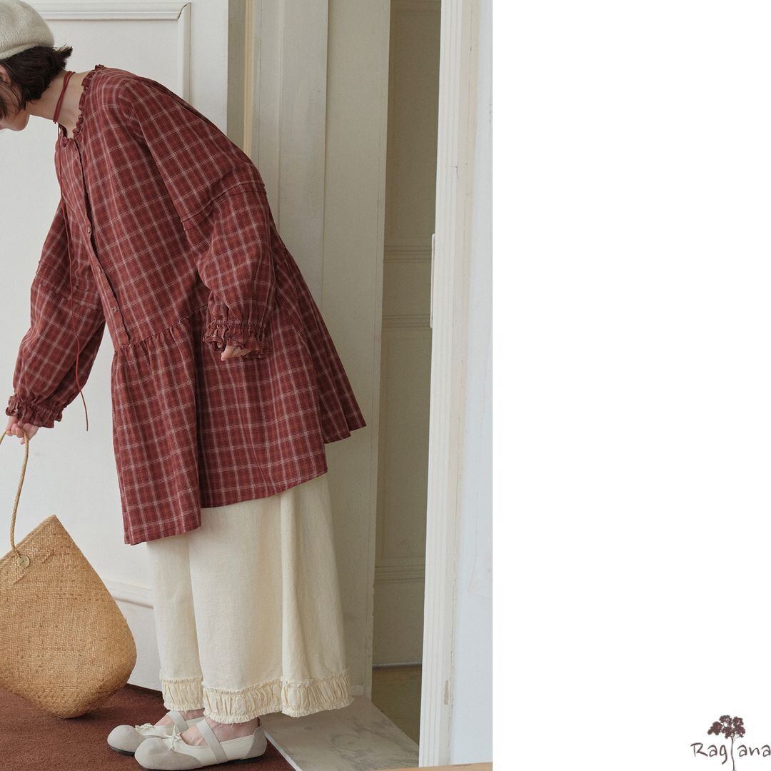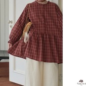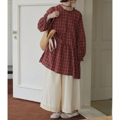 チェック柄が可愛らしいロングブラウスです。