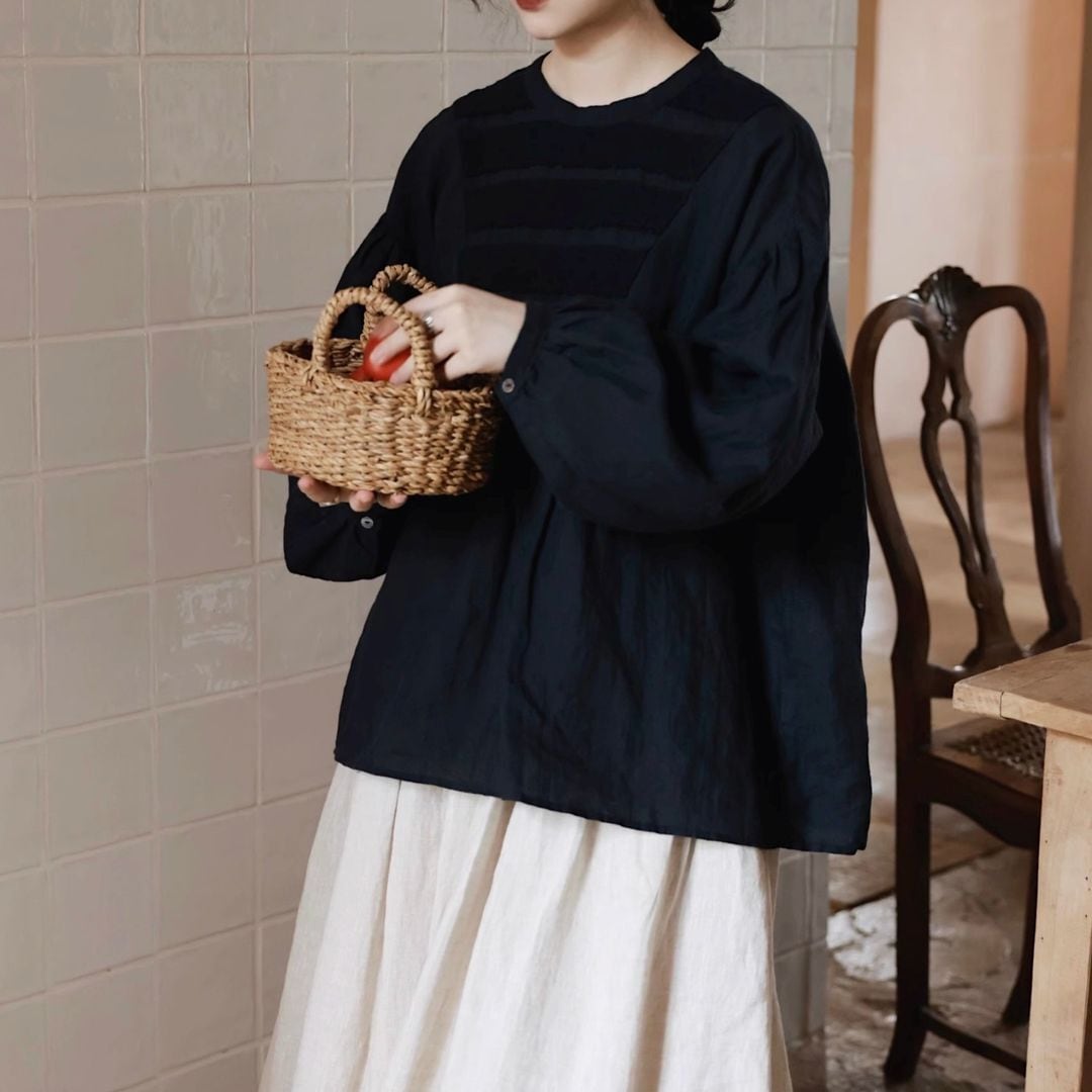 同色のレースが可愛らしいブラウスです。