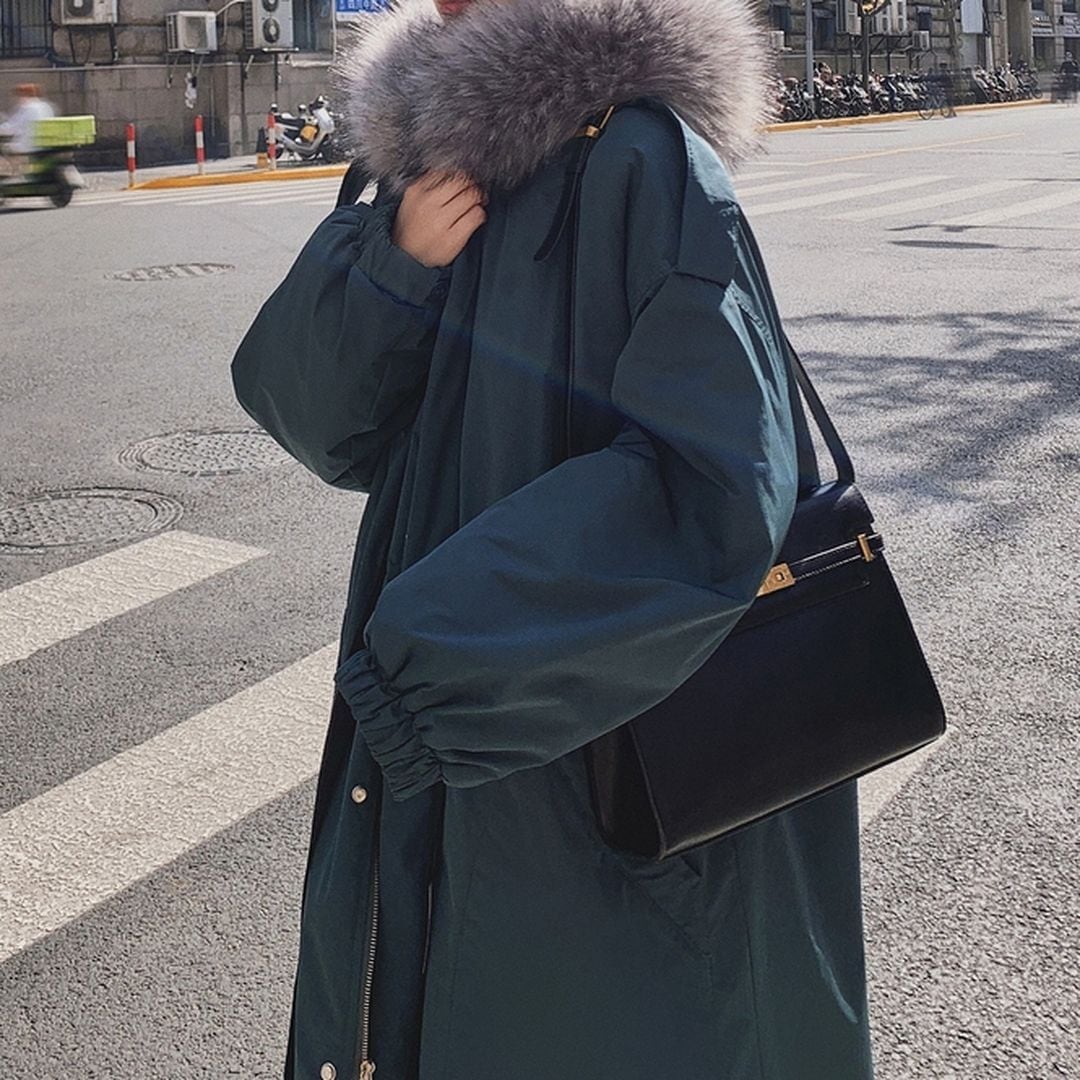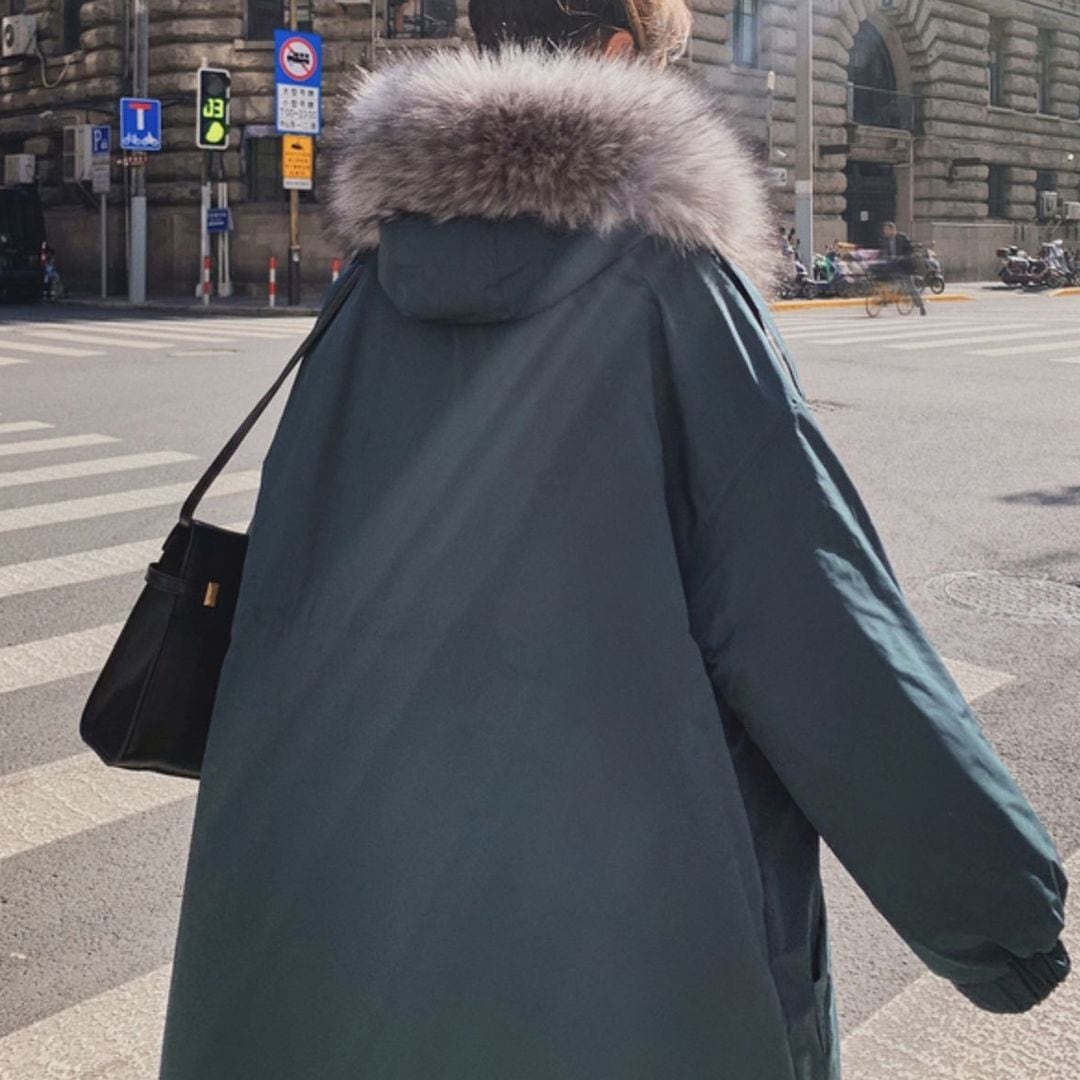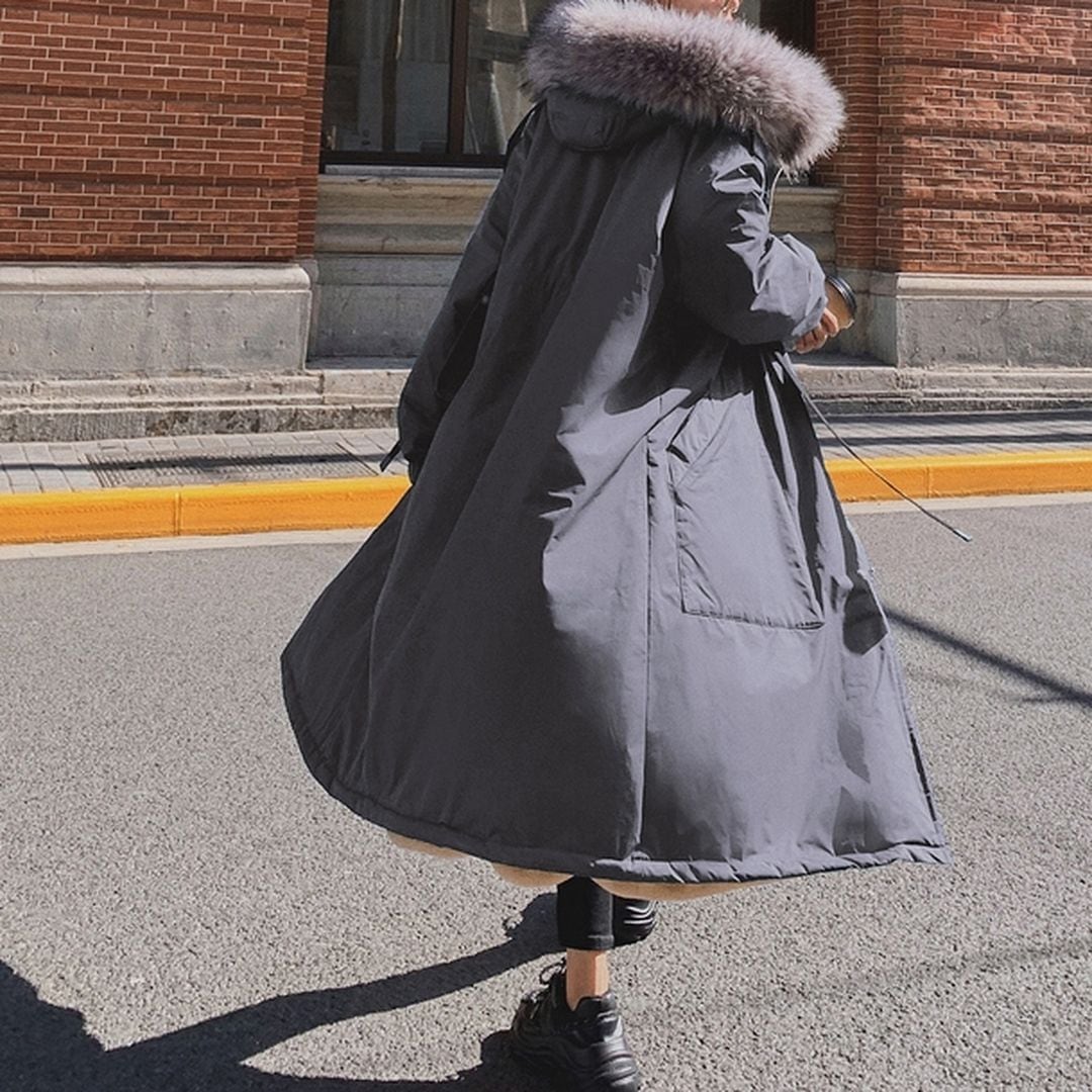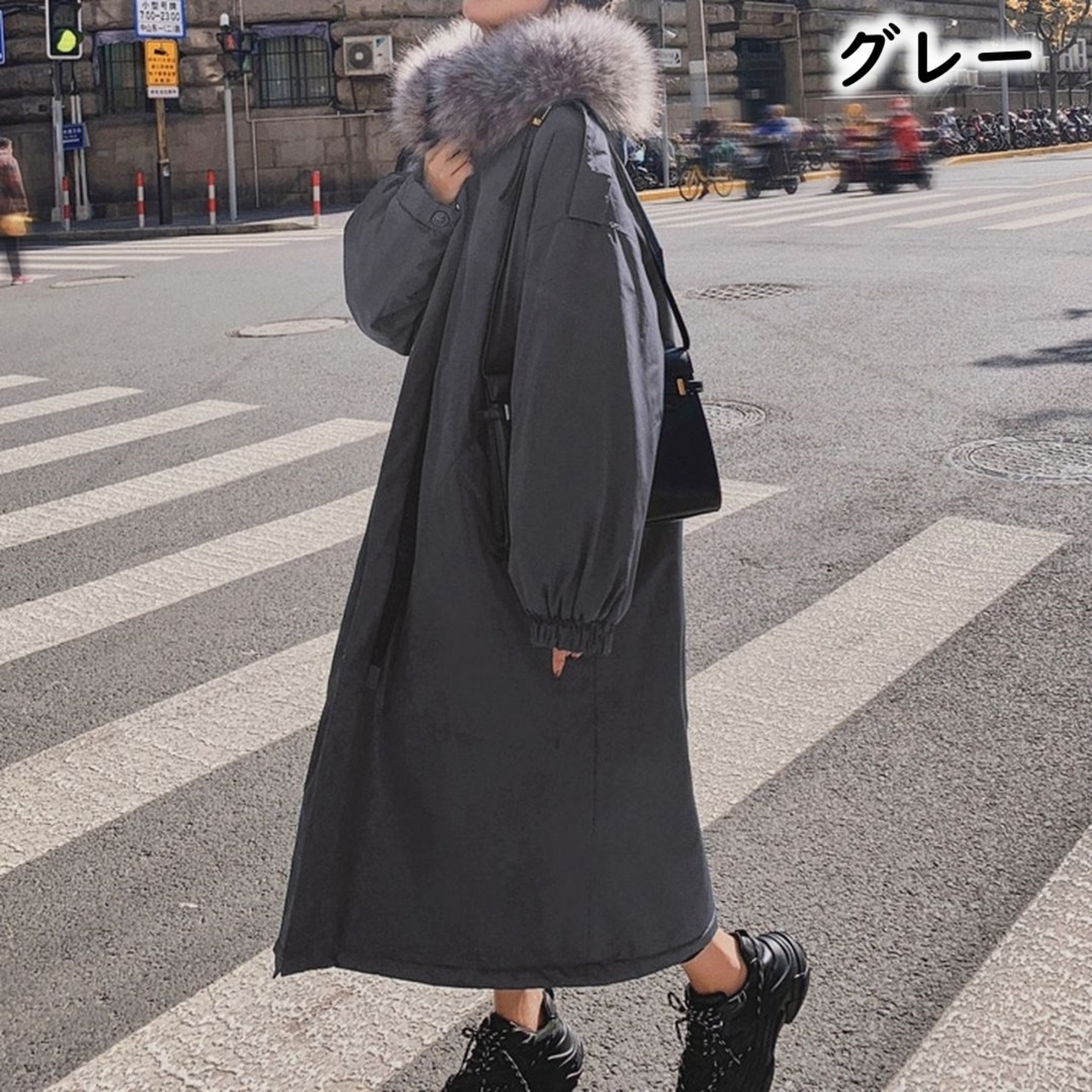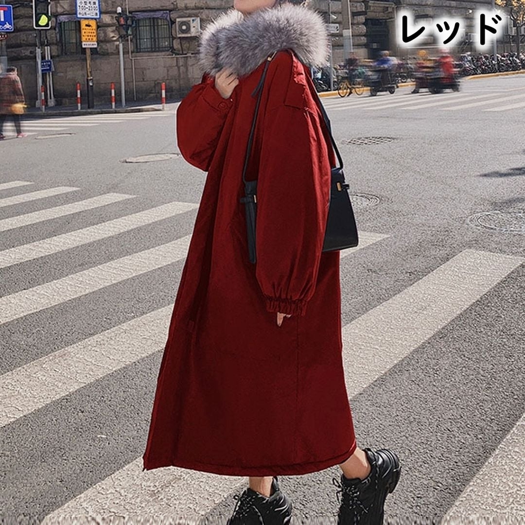 ファーのフードが付いたロングコートです。