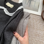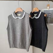 レースの付いた襟が可愛らしいベストです。