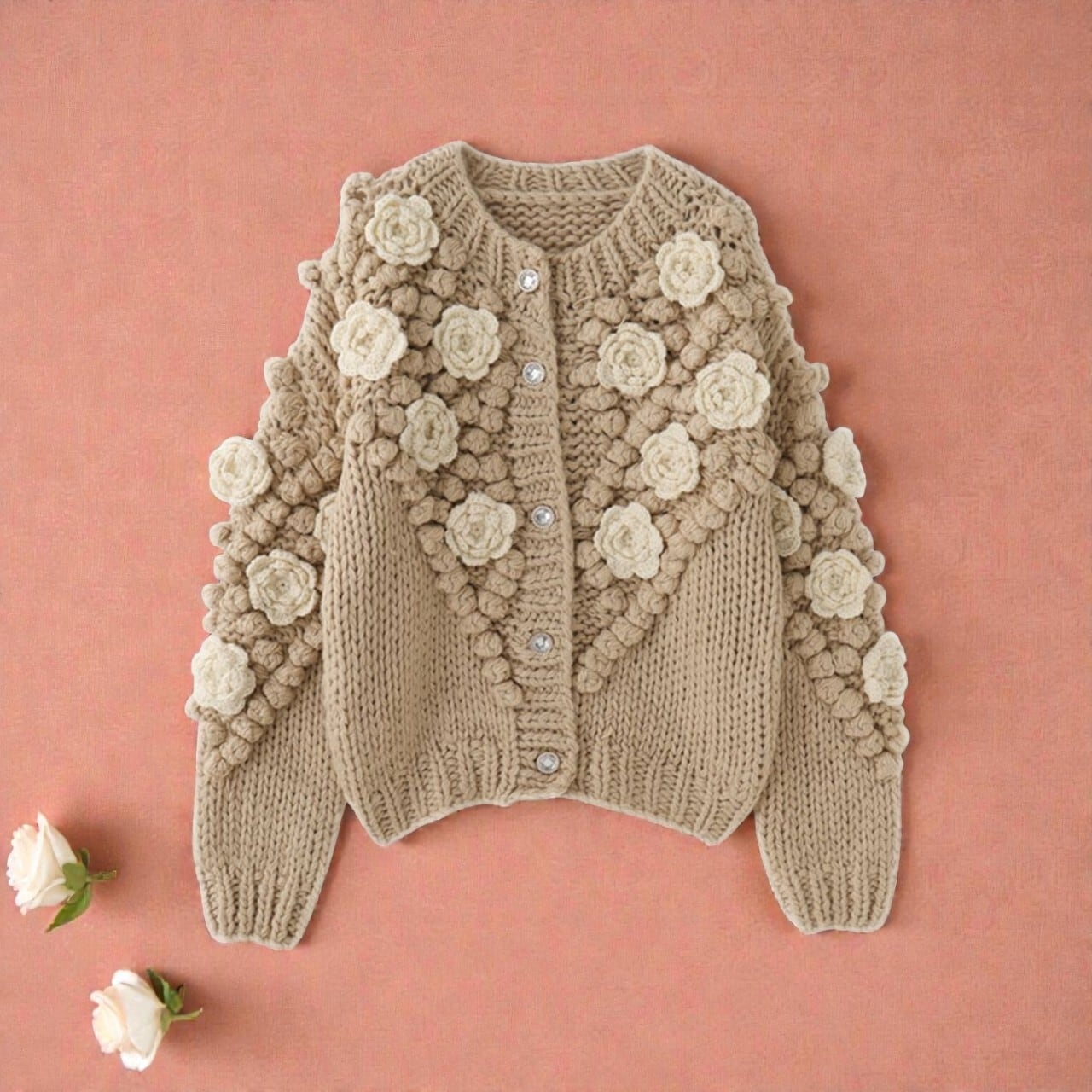 フラワーモチーフの可愛らしいカーディガンです。