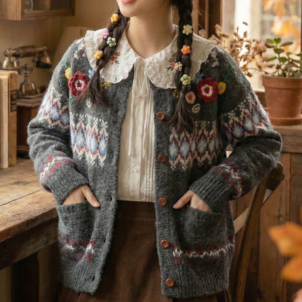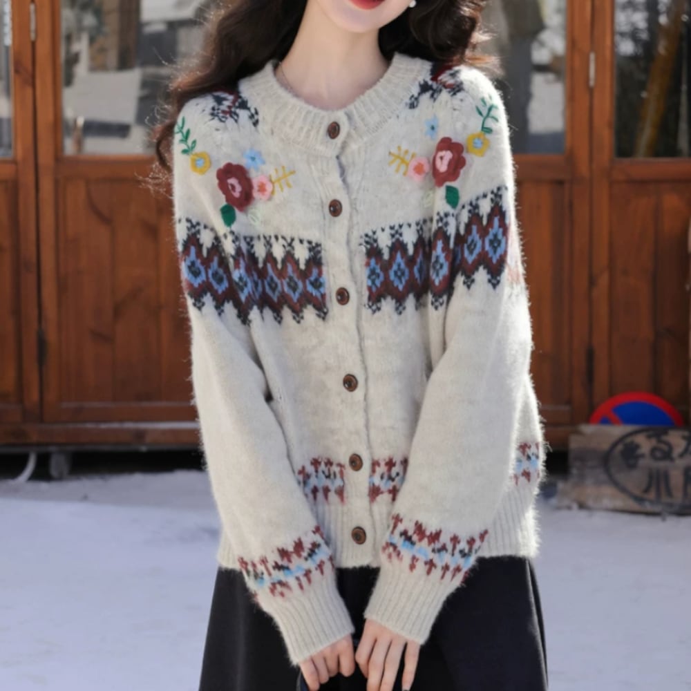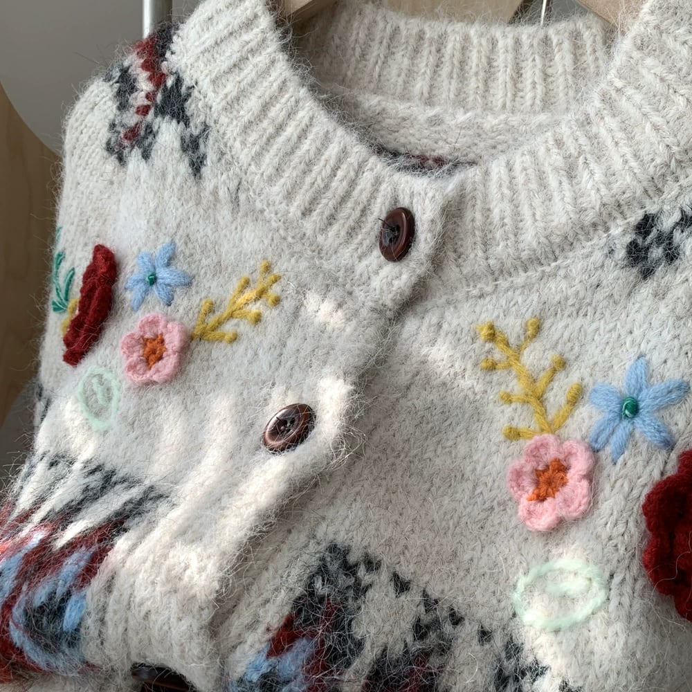 フラワーモチーフの可愛らしいカーディガンです。