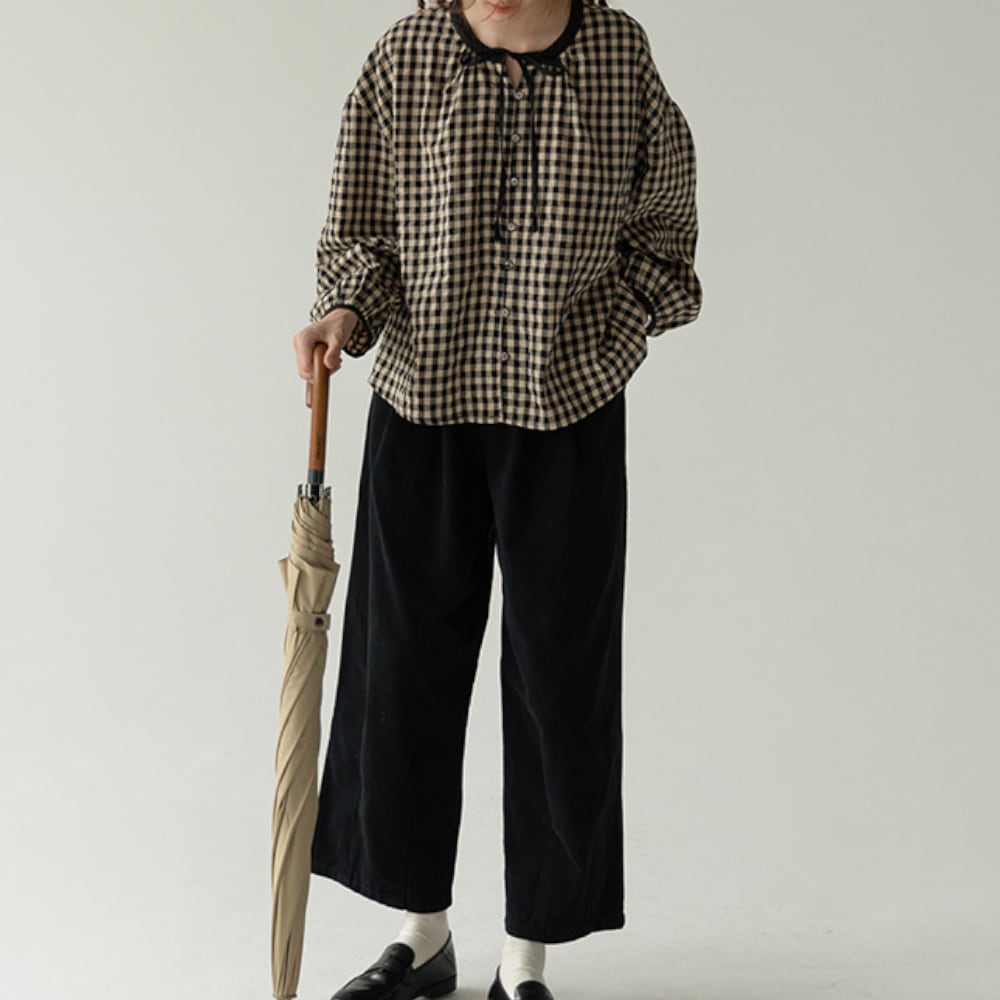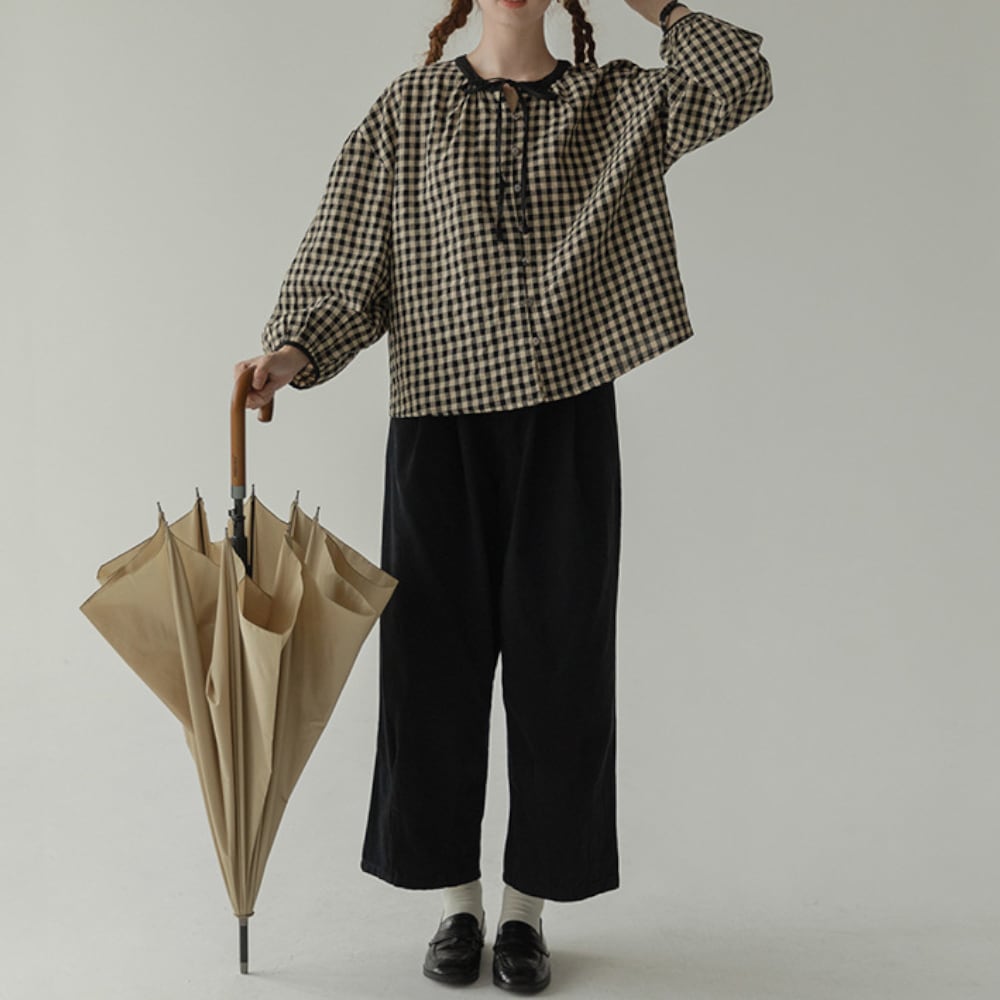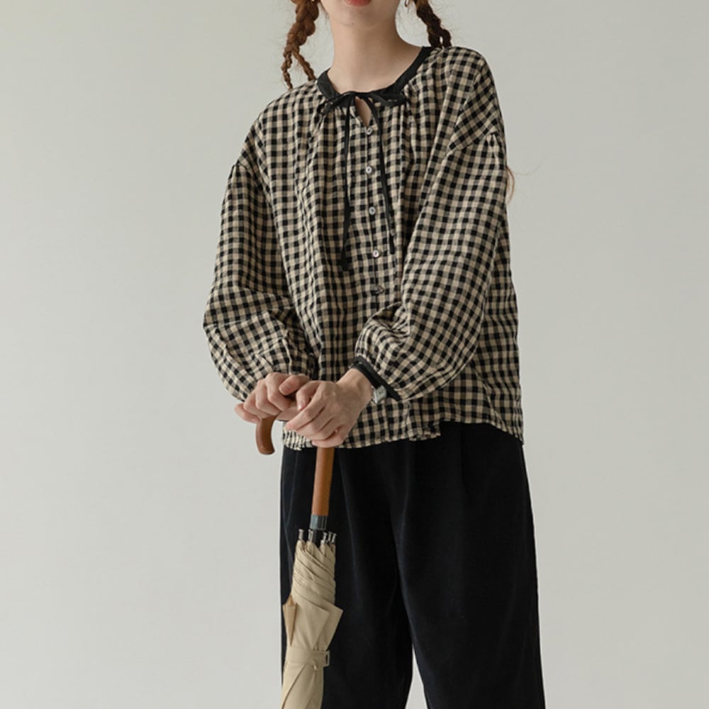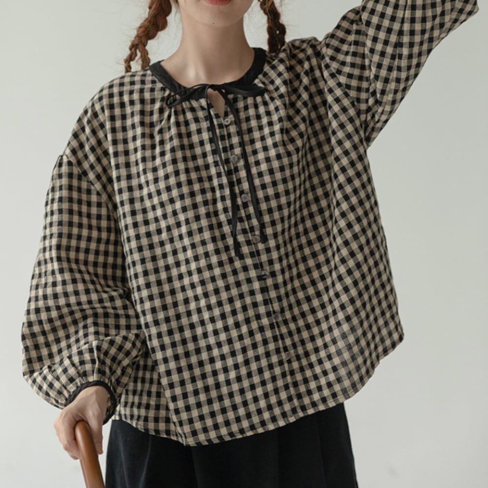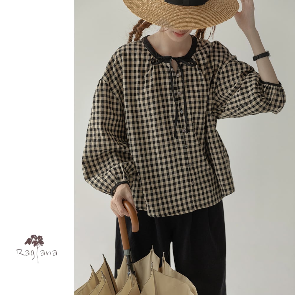 ギンガムチェック リボンブラウス Y 25047