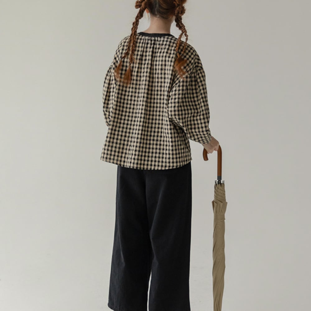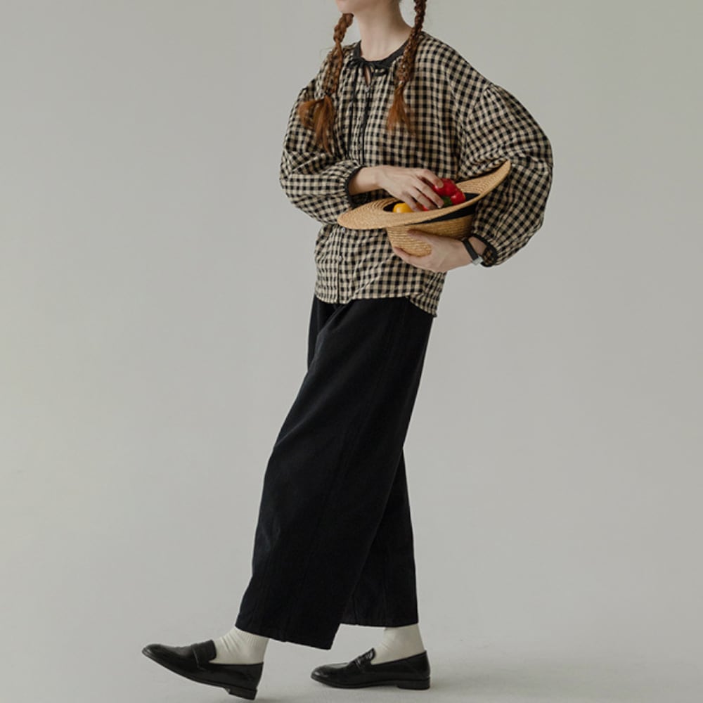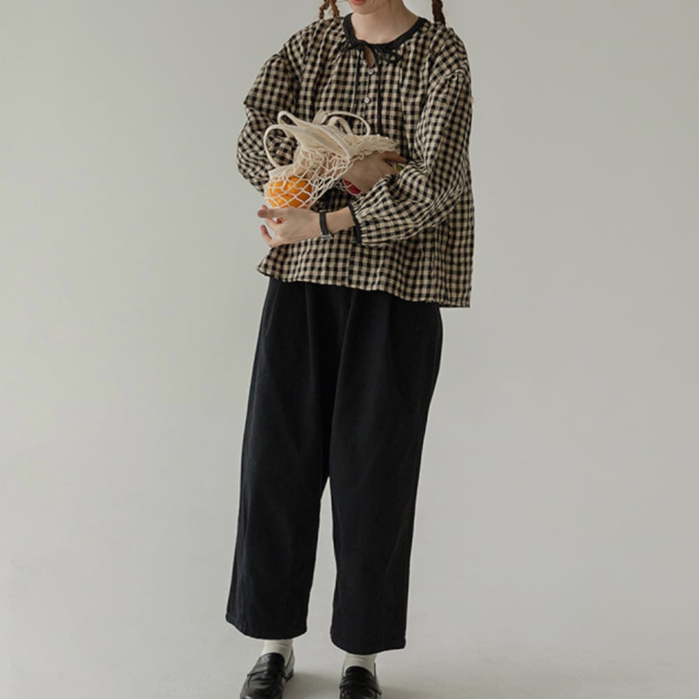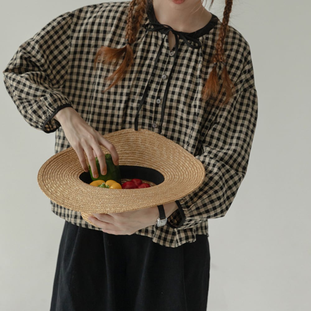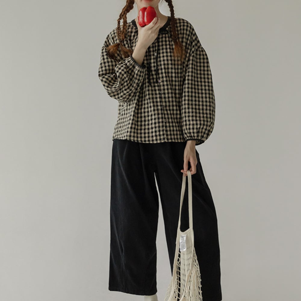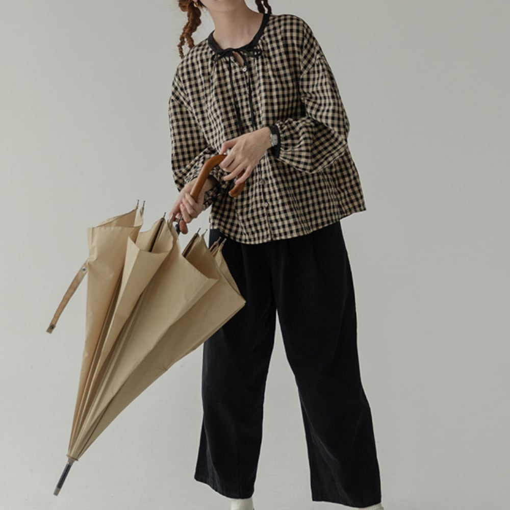 ギンガムチェック リボンブラウス Y 25047