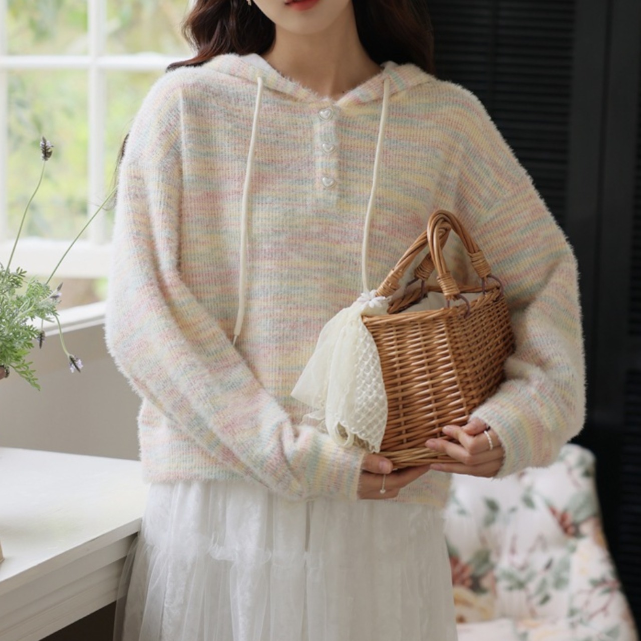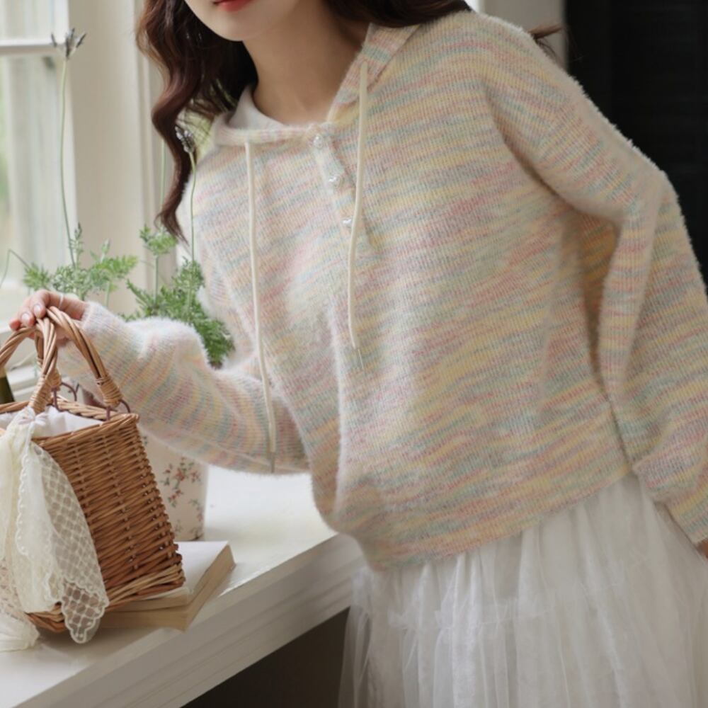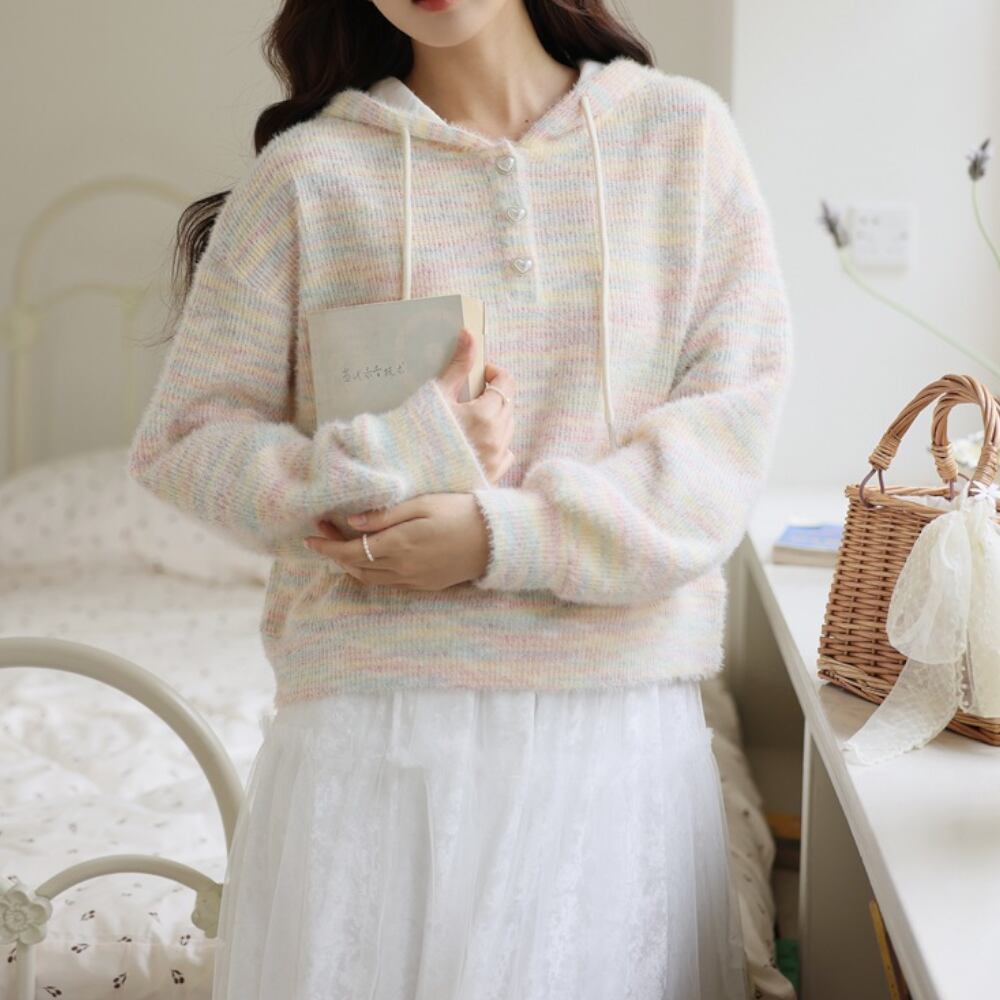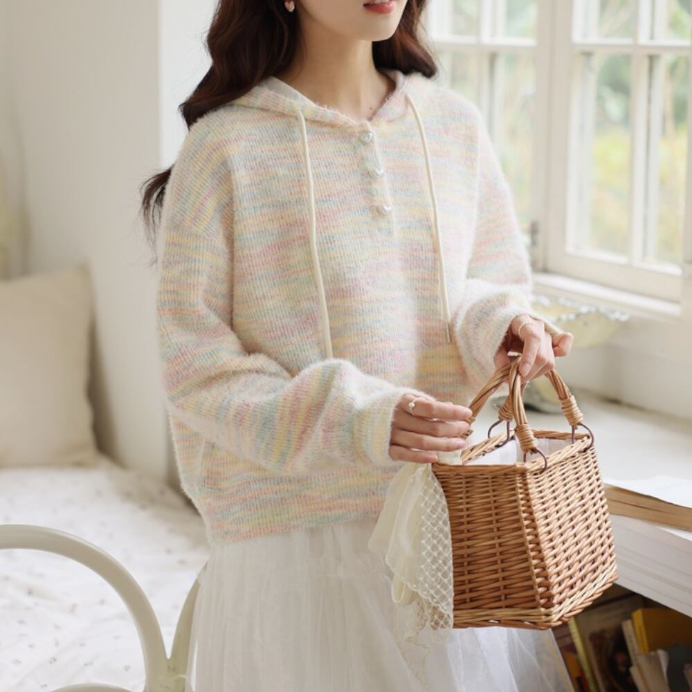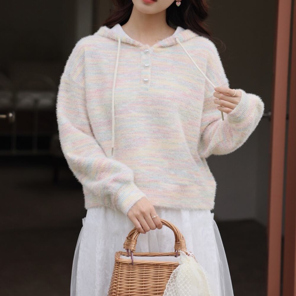 レインボーフード付き長袖 ニット Y 25049