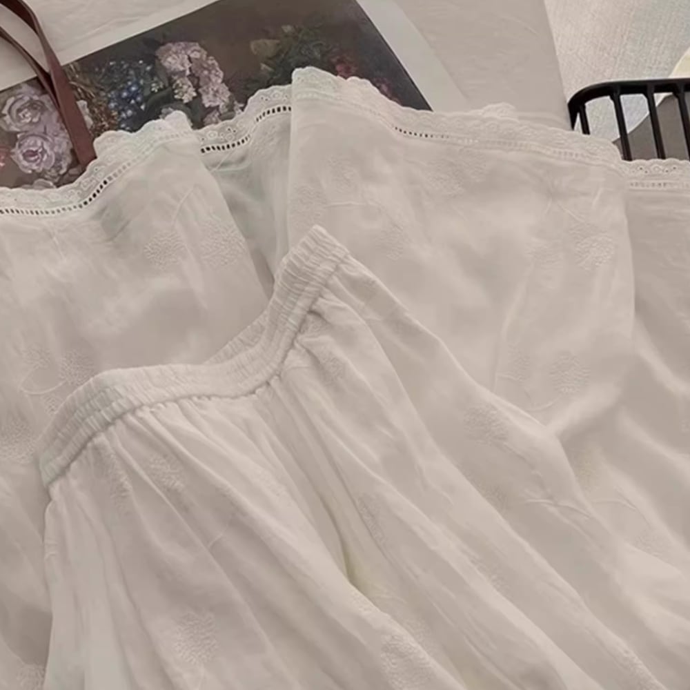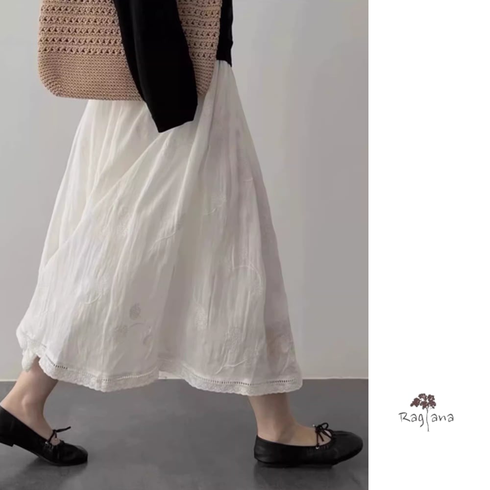 ホワイトレーストリムミディスカート Y 25054