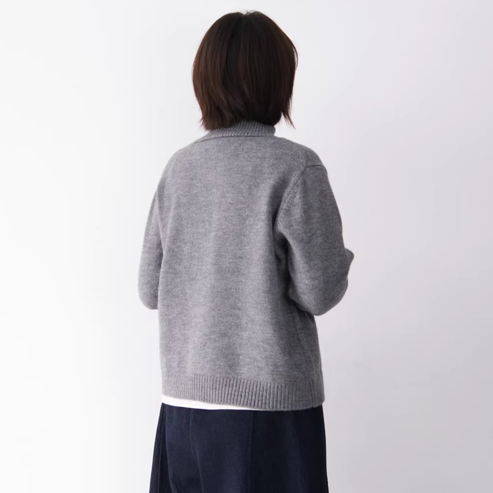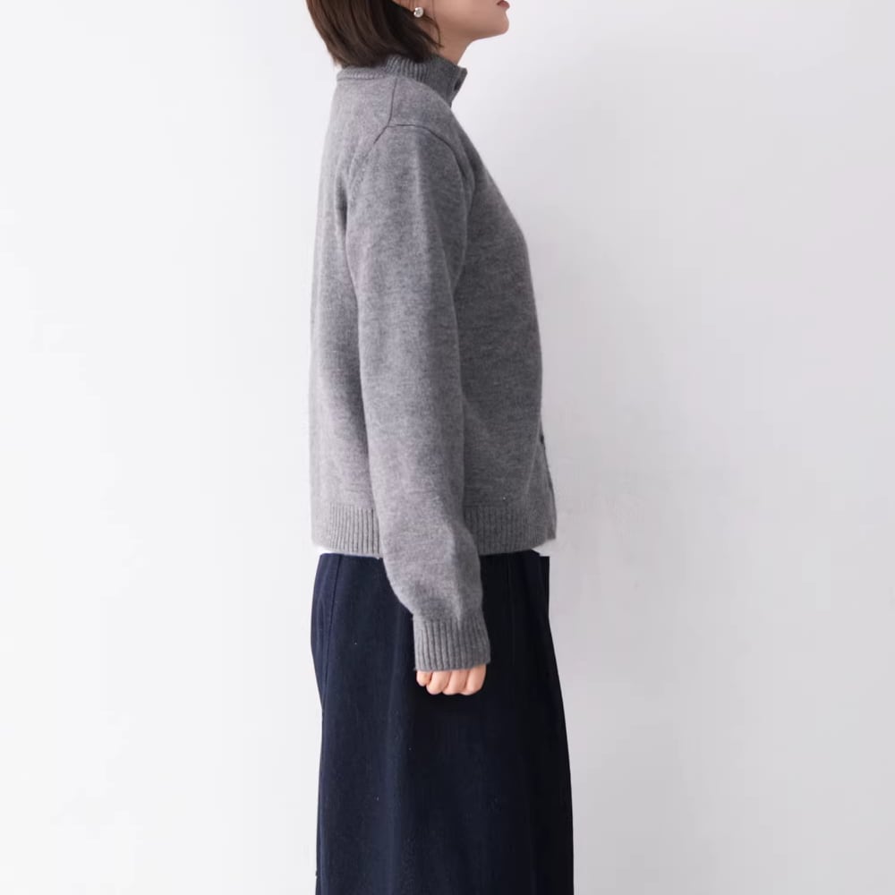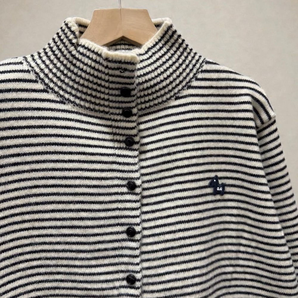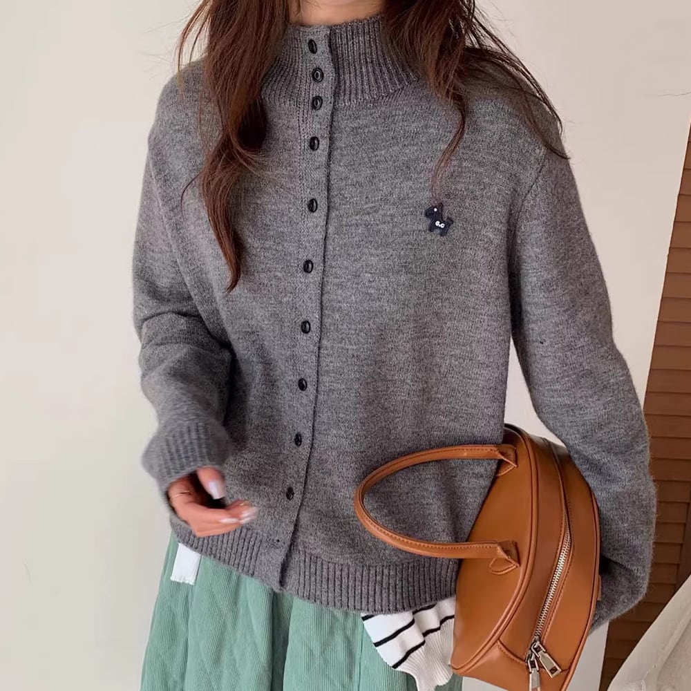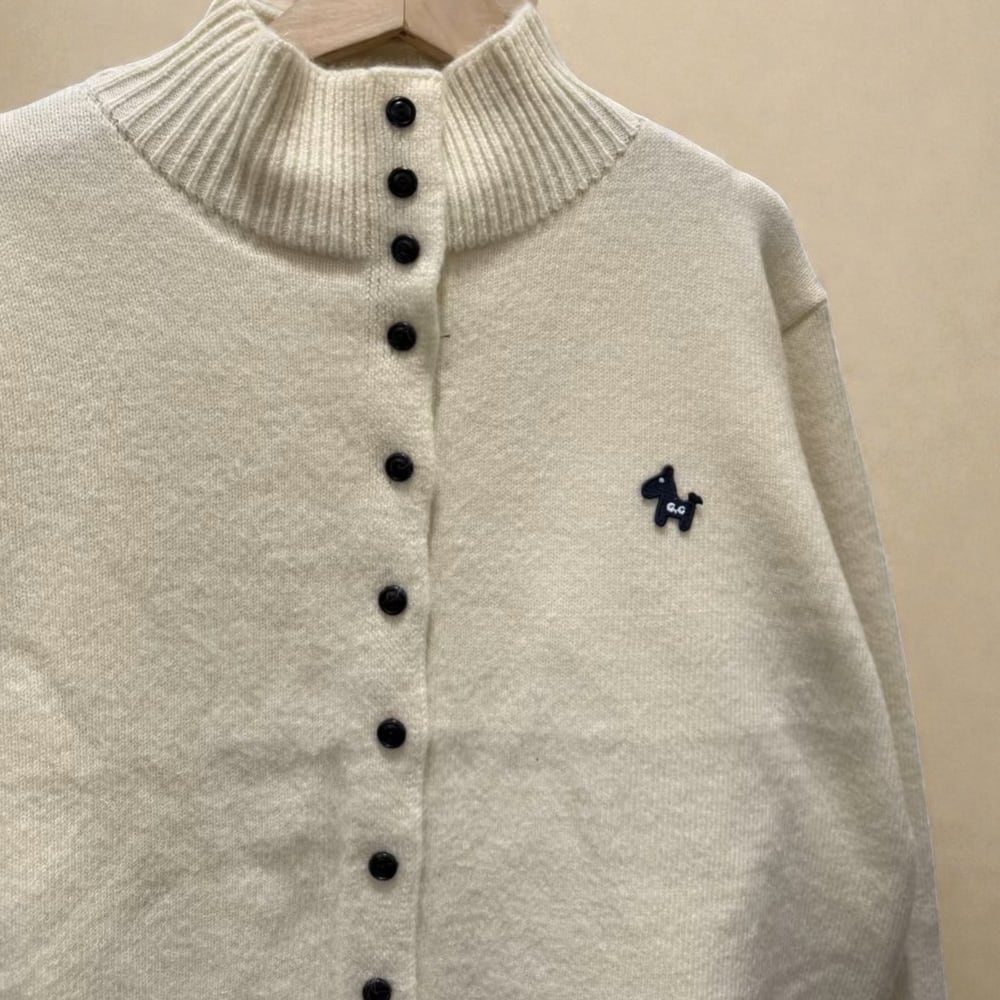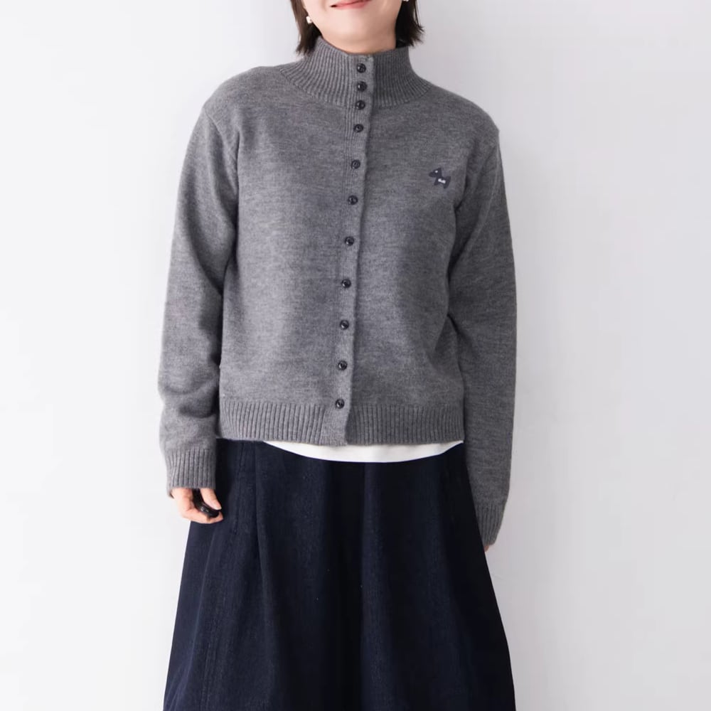 ワンポイントのハイネックカーディガン。