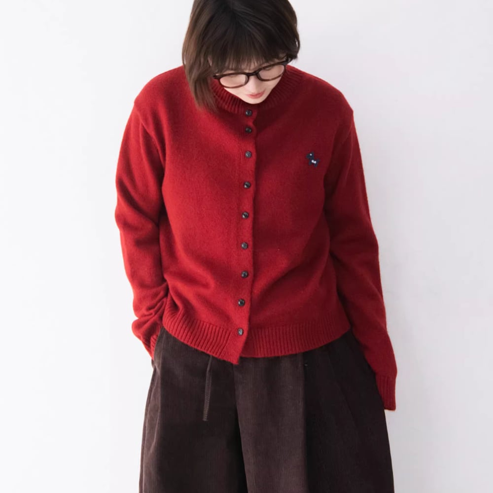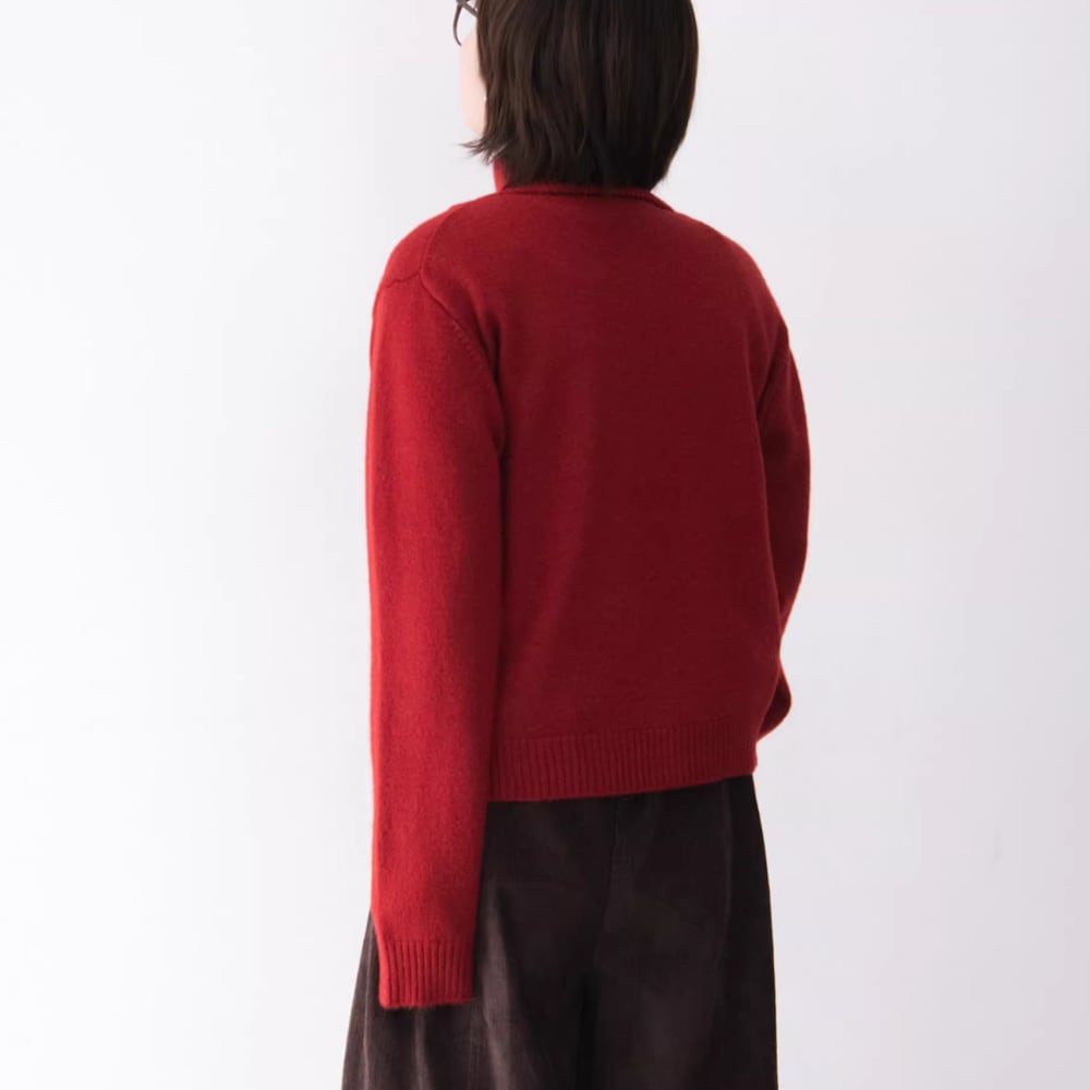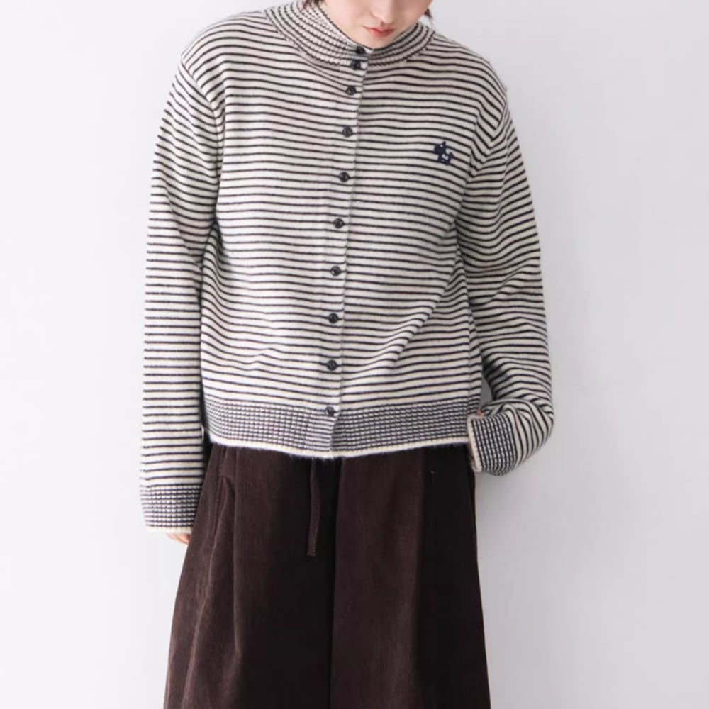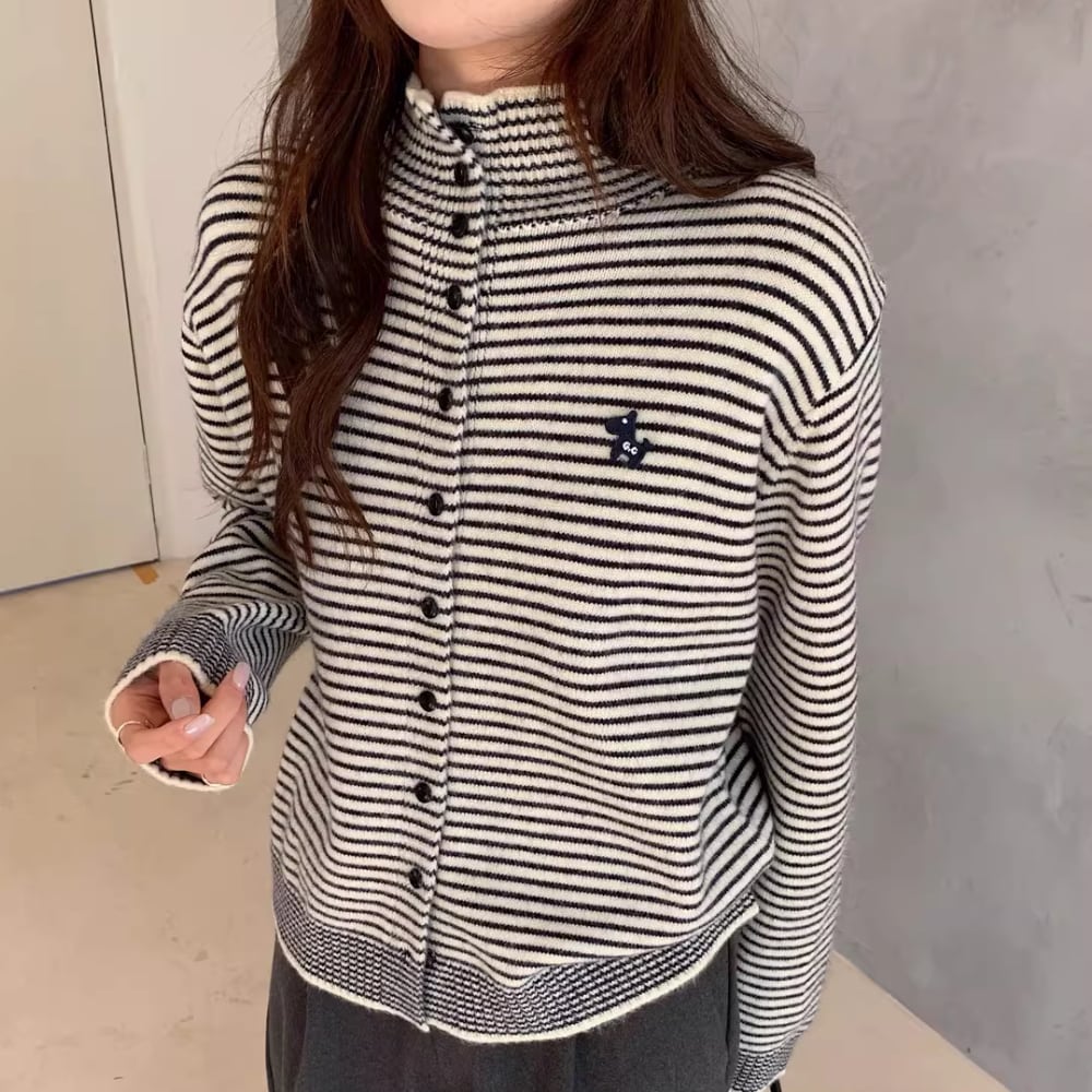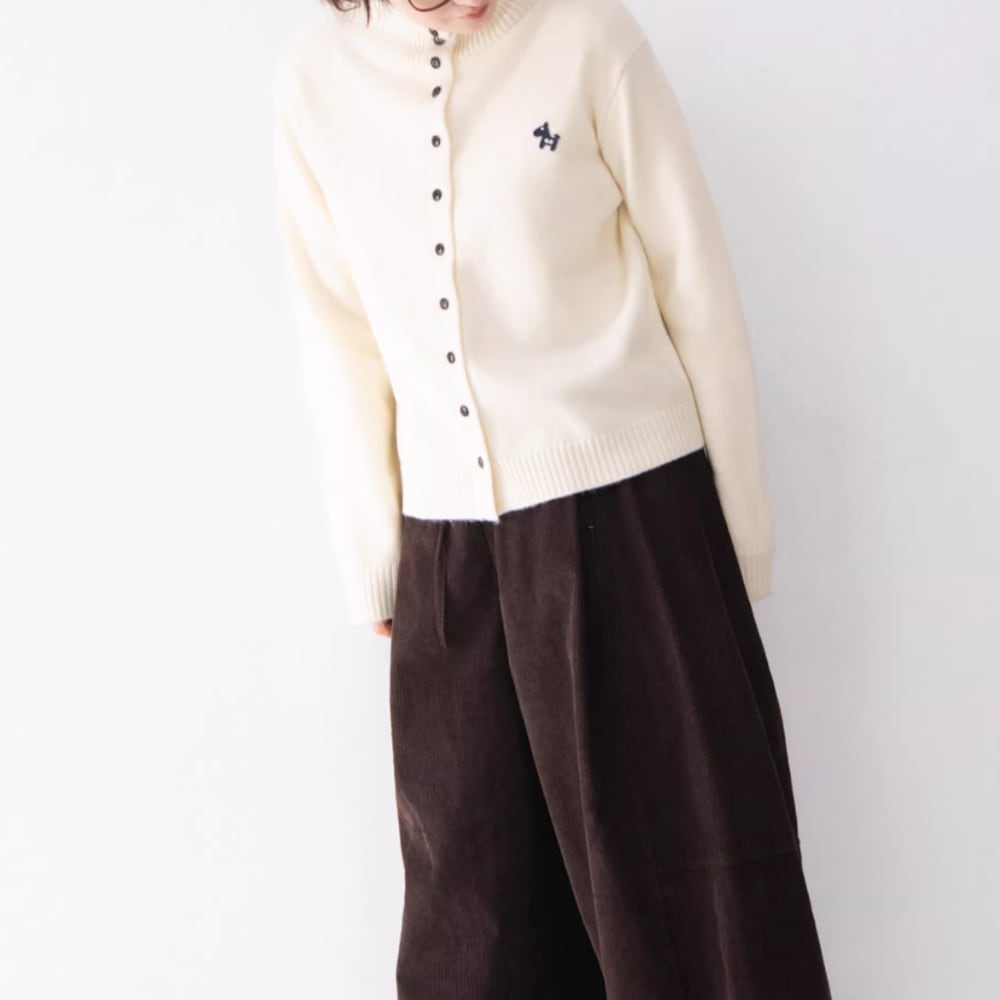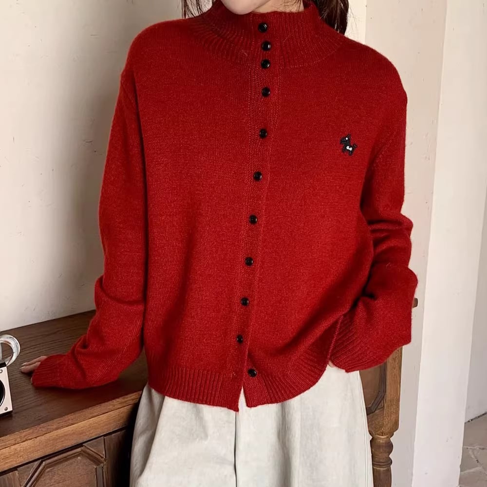 ワンポイントのハイネックカーディガン。