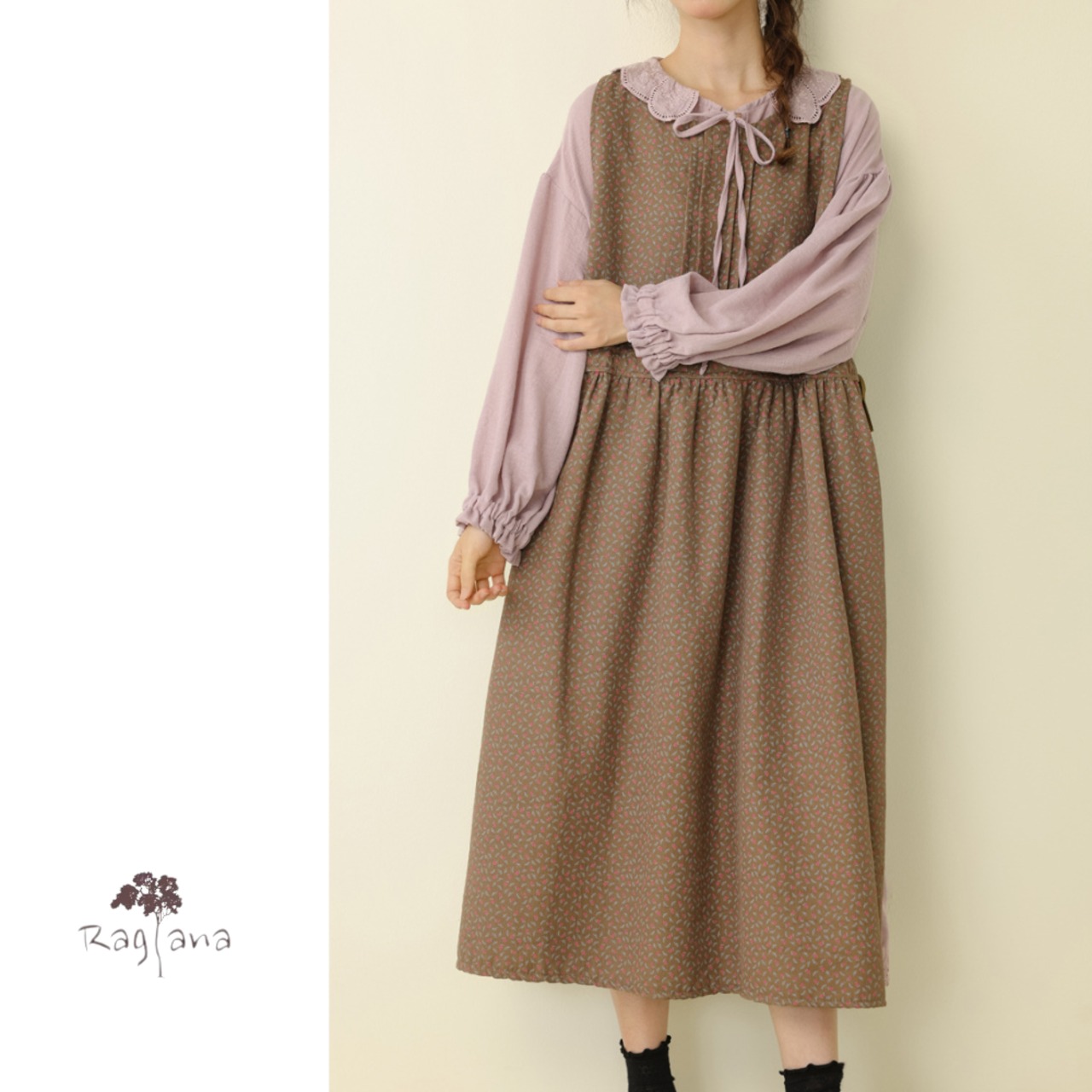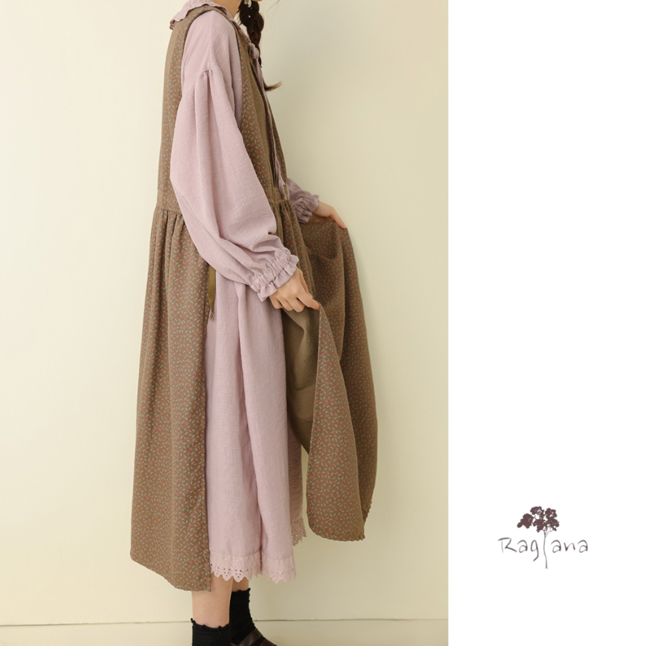小花柄 エプロンワンピース 2col Y 260023