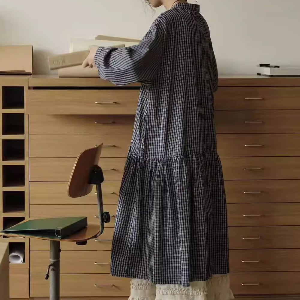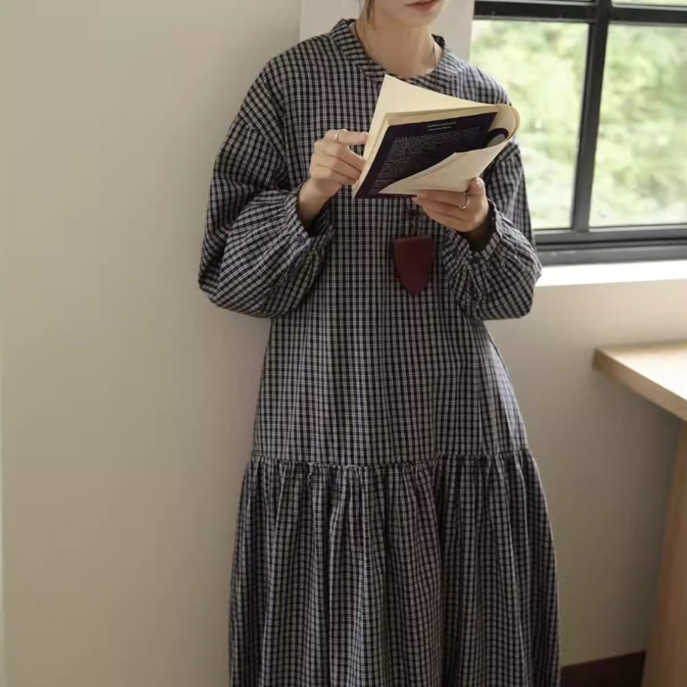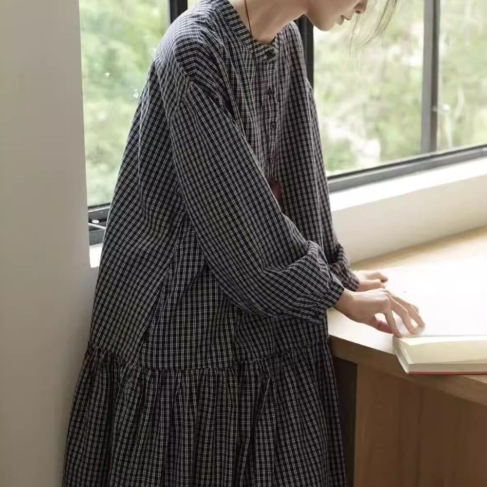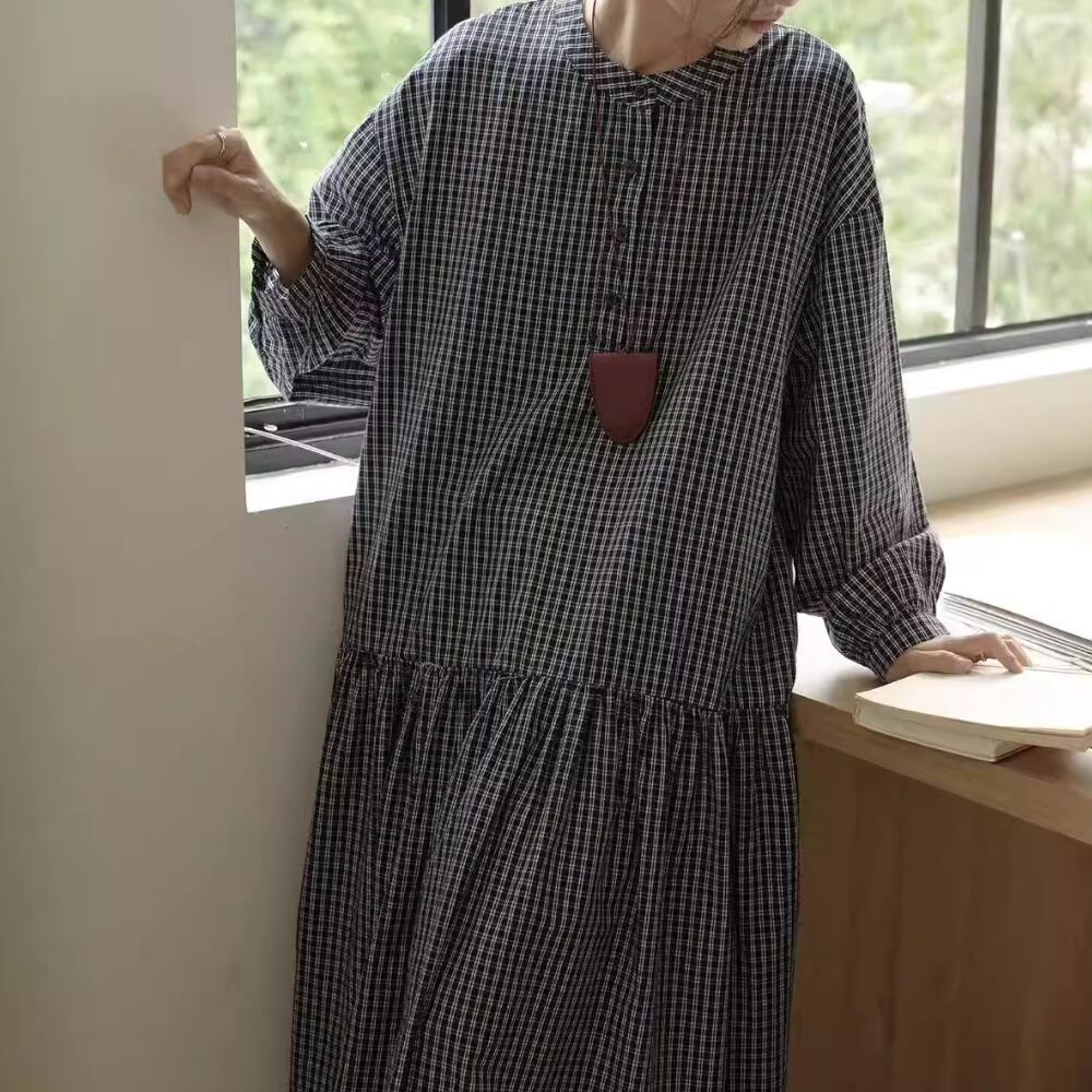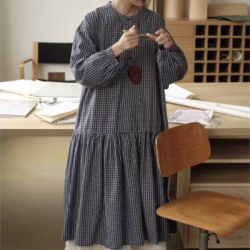 チェック柄長袖 シャツワンピース Y 260013