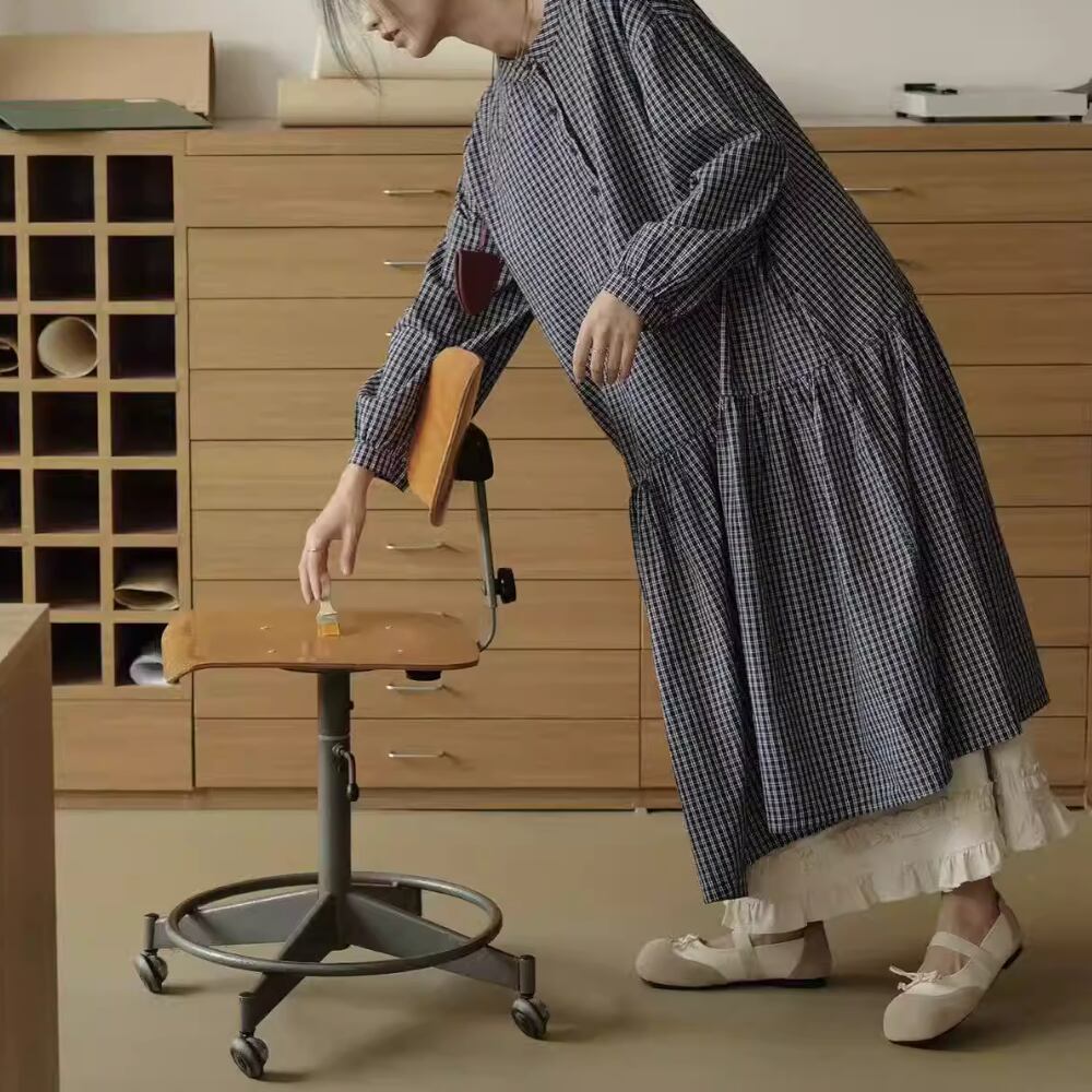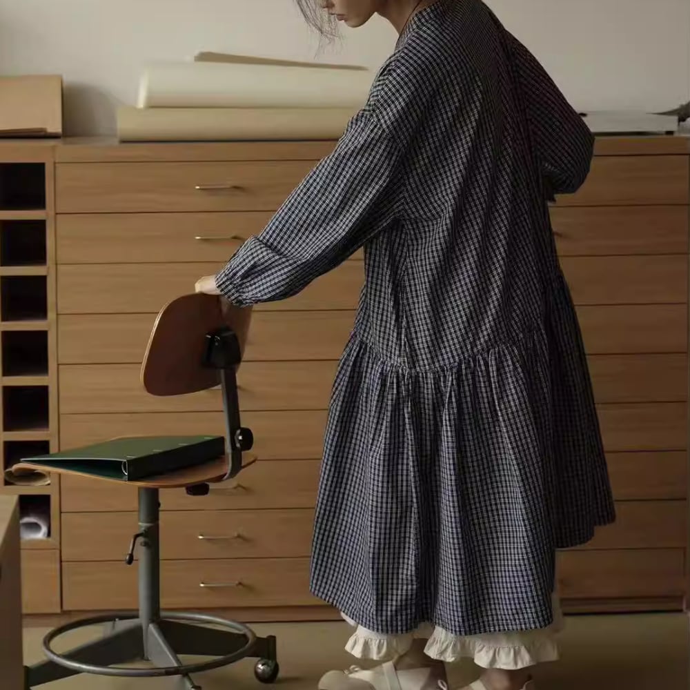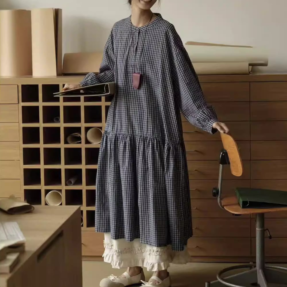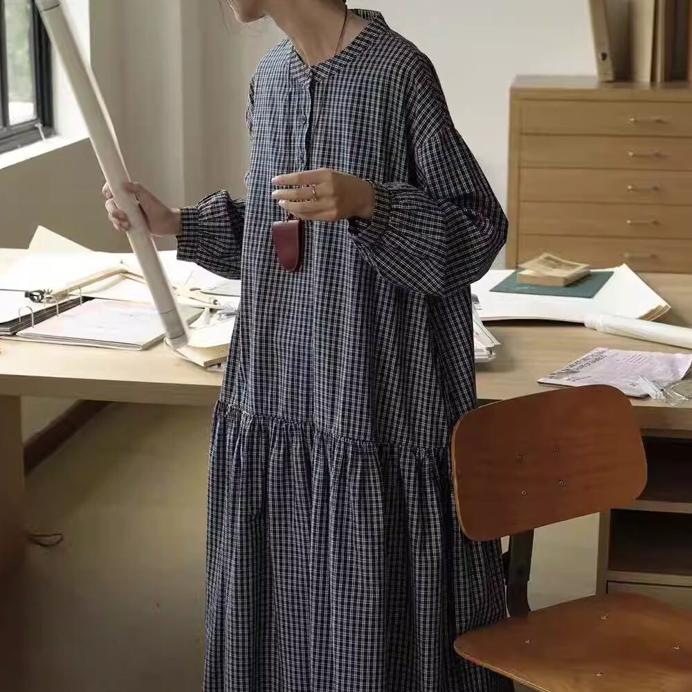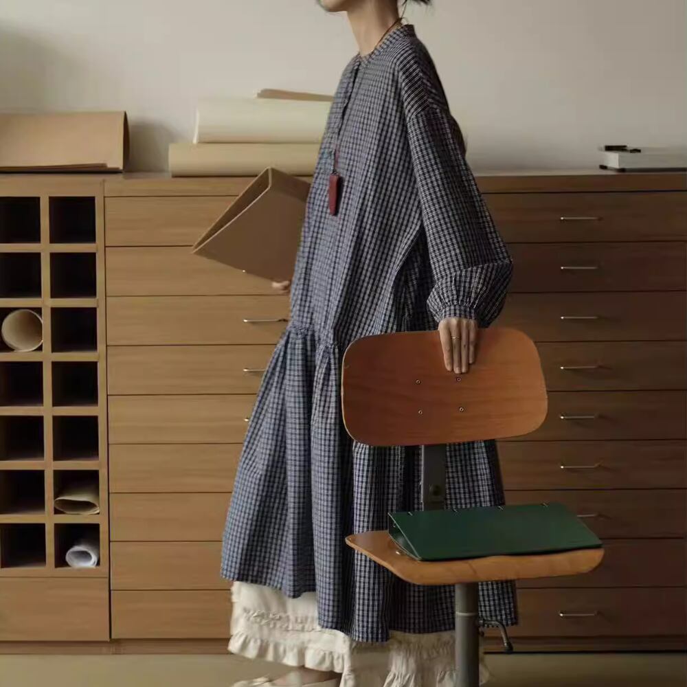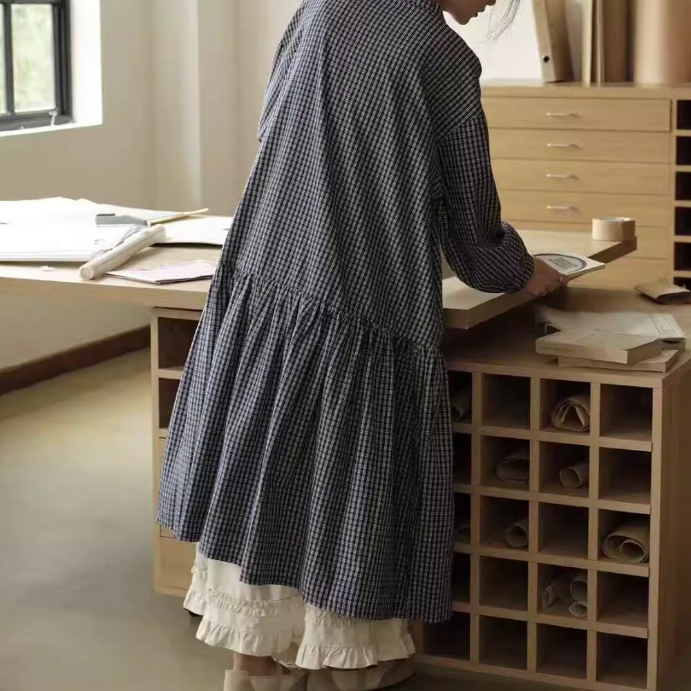 チェック柄長袖 シャツワンピース Y 260013