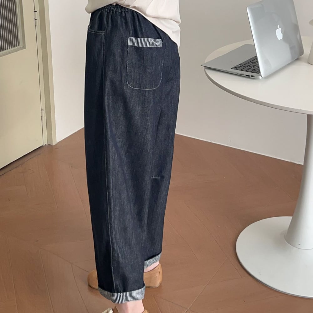 ウエストゴムのデニムドパンツです。