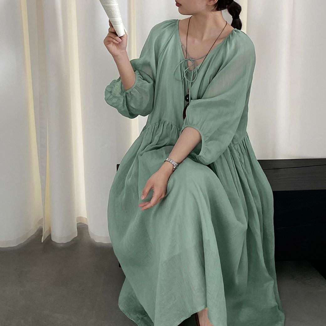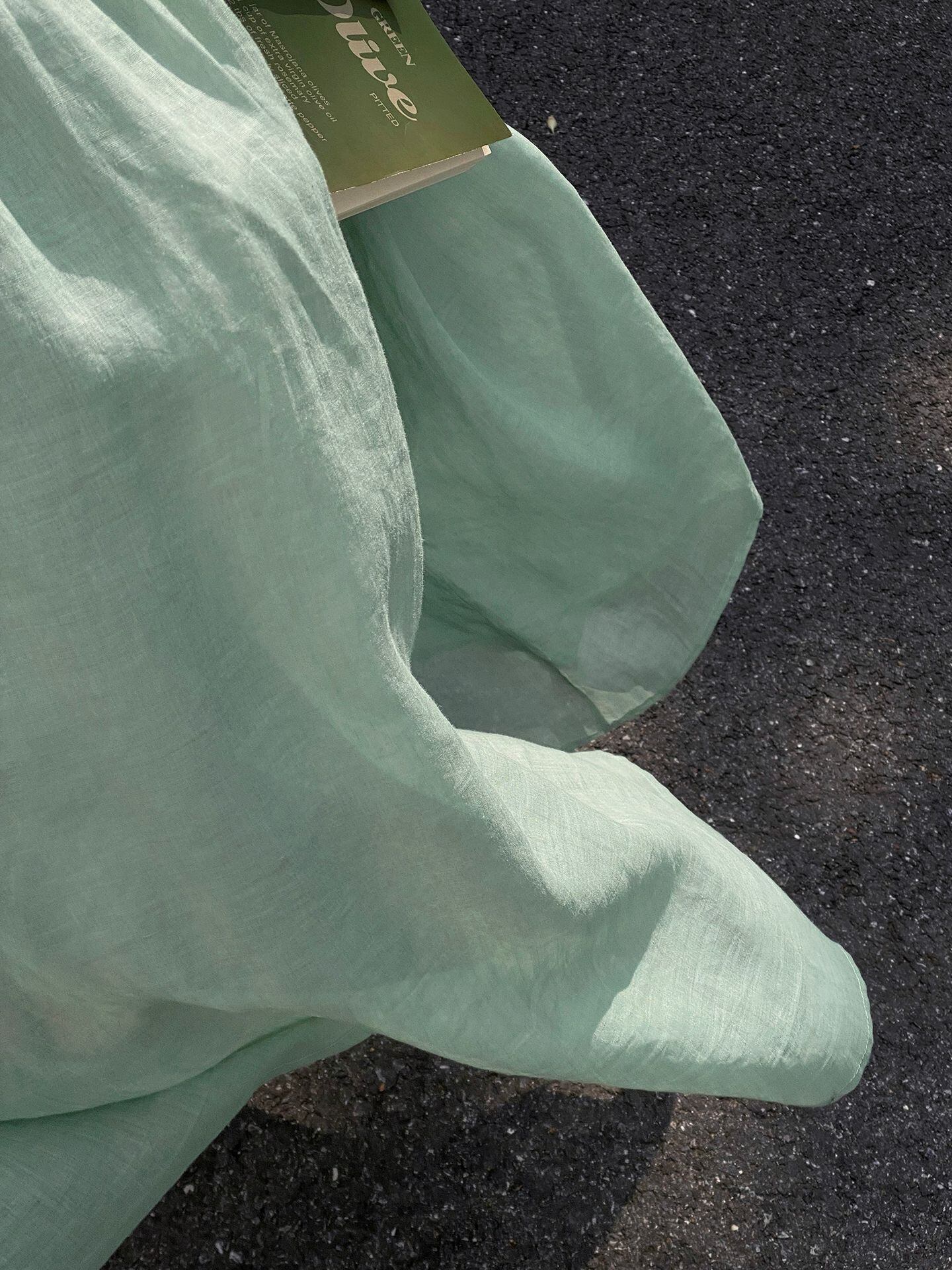 くすませたピンクとセージグリーンは、大人の肌に溶け込むニュアンスカラー。