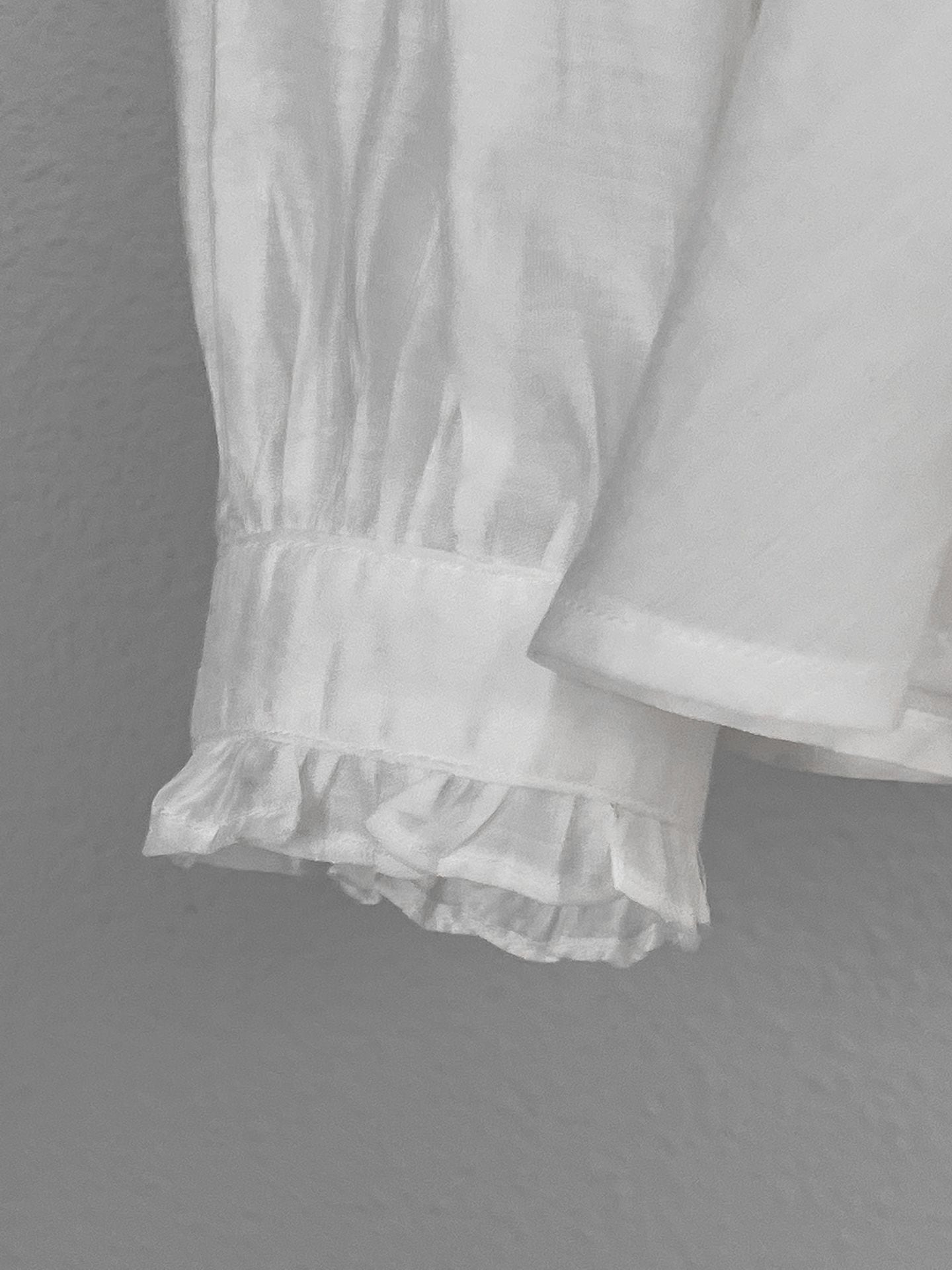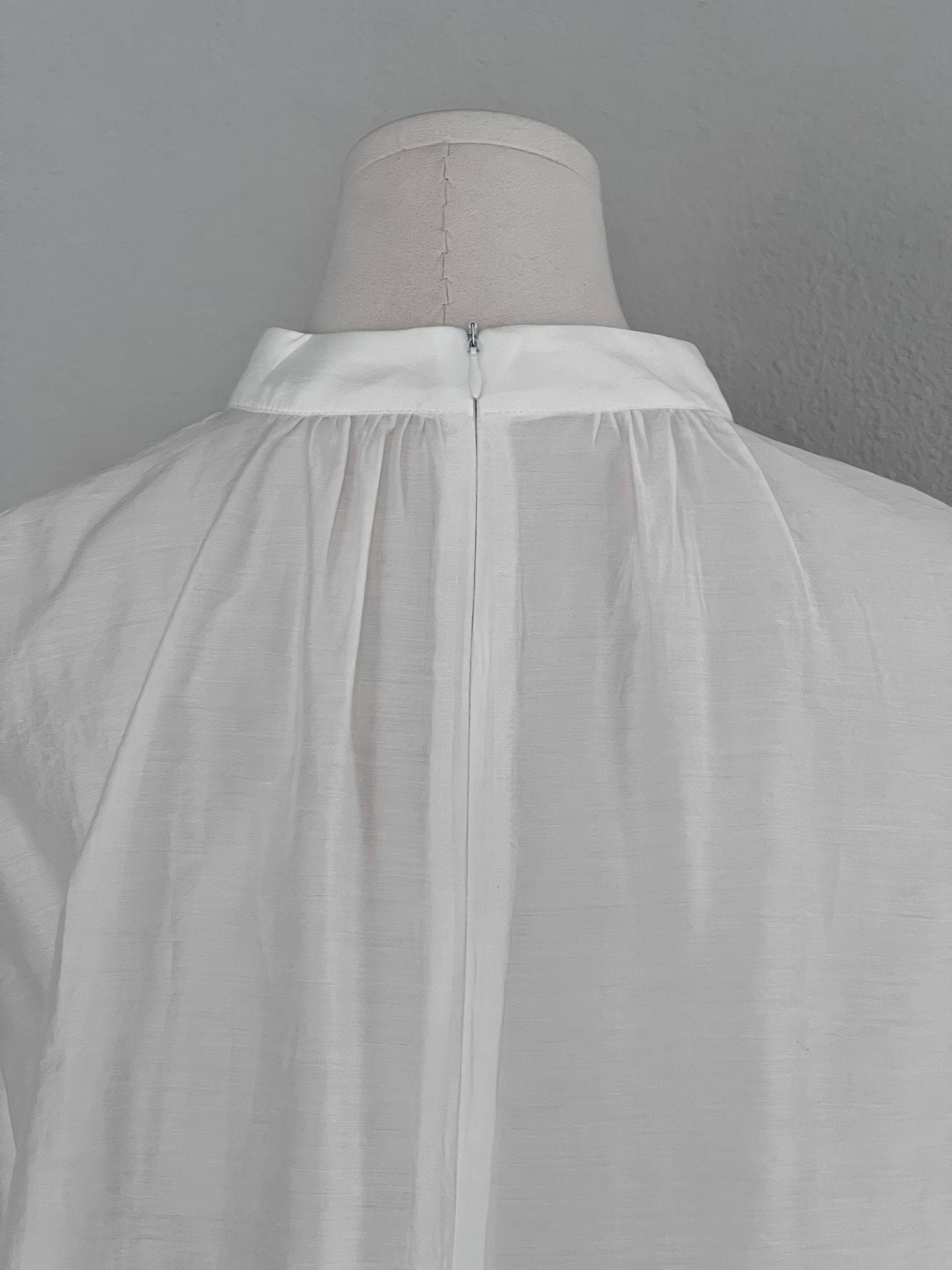 胸下の高い位置での切り替えとボリューム袖が、ウエスト位置を高く見せ、お腹周りや二の腕を自然にカバーします