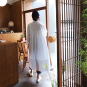 シンプルなシャツワンピース!パンツと重ねてもおしゃれに着ていただけます。重ねてコーデできるエプロンドレスも一緒にどうぞ!