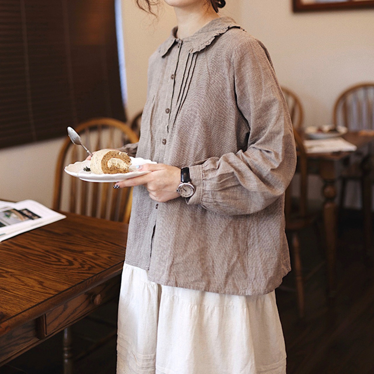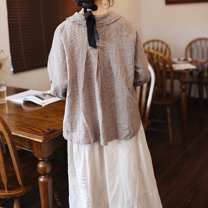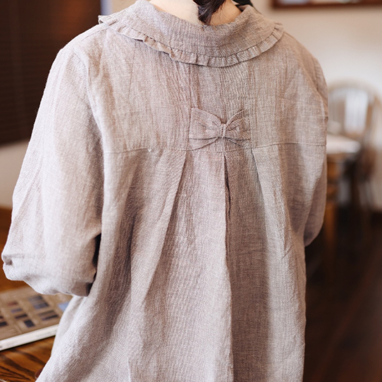 バックリボンリネンブラウス R2020039