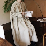 二重に重なっているレースの襟やお袖が可愛らしい前ボタンのワンピースです。