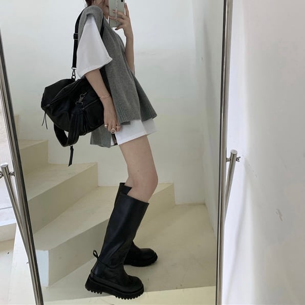 ルーズなグレーのベストはどんなアイテムにも合わせやすいので、年中大活躍のお品です。学生さんにも!