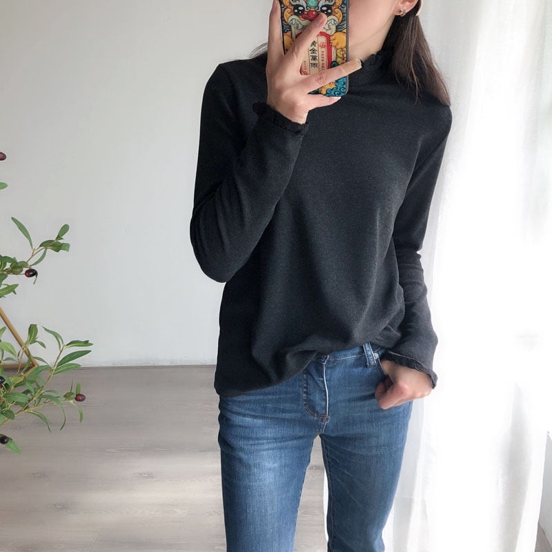 柔らかくて暖かい首を締め付けない高さにコットンフリルが可愛い