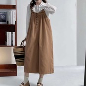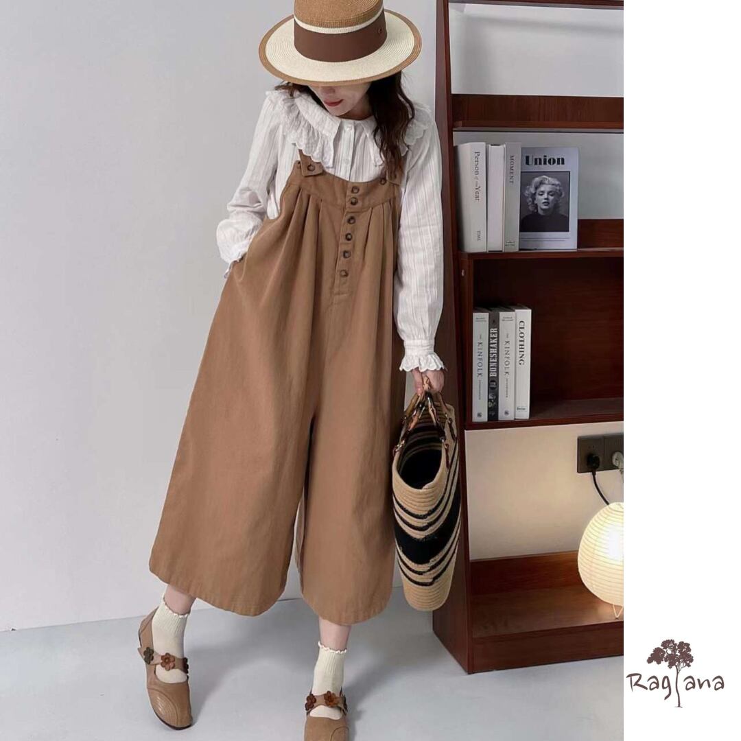 短めの丈で軽やかな印象のワイドパンツサロペットです。