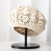 繊細なレース編みと可愛らしいお花モチーフが特徴のニットベレー帽です。