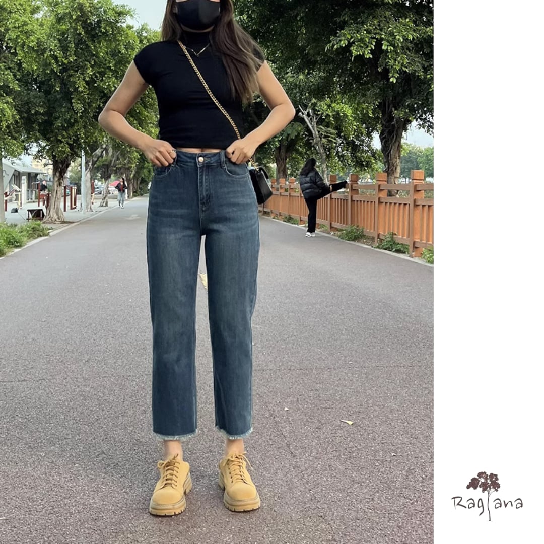 切りっぱなしの裾がカジュアルなストレッチジーンズです。