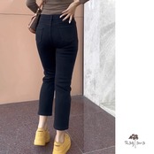 おしゃれなハイウエストの9分丈ストレッチストレートジーンズ!