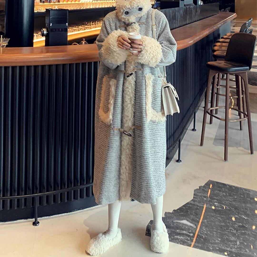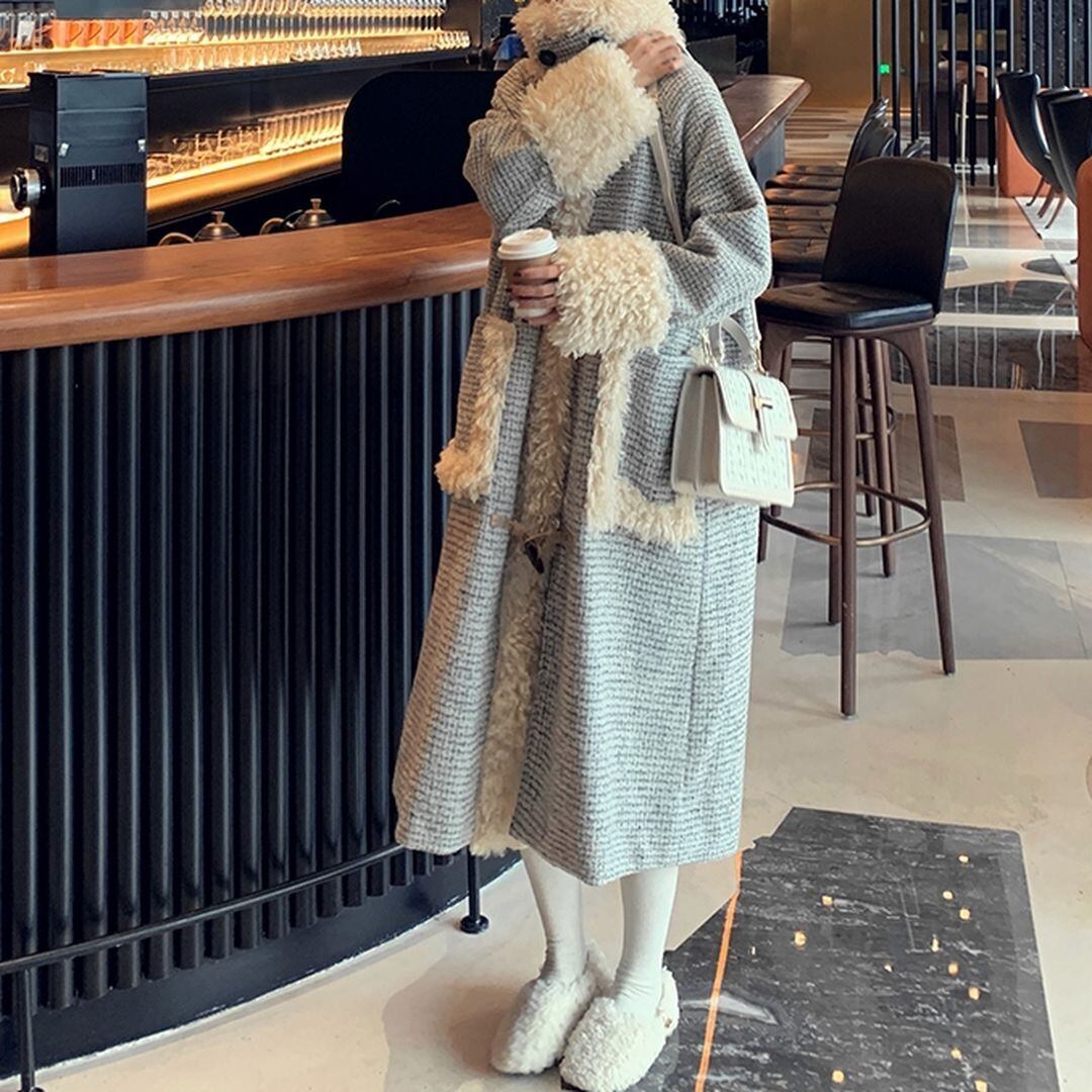 冬のシーズンムード溢れるボアがポイントのロングコート。