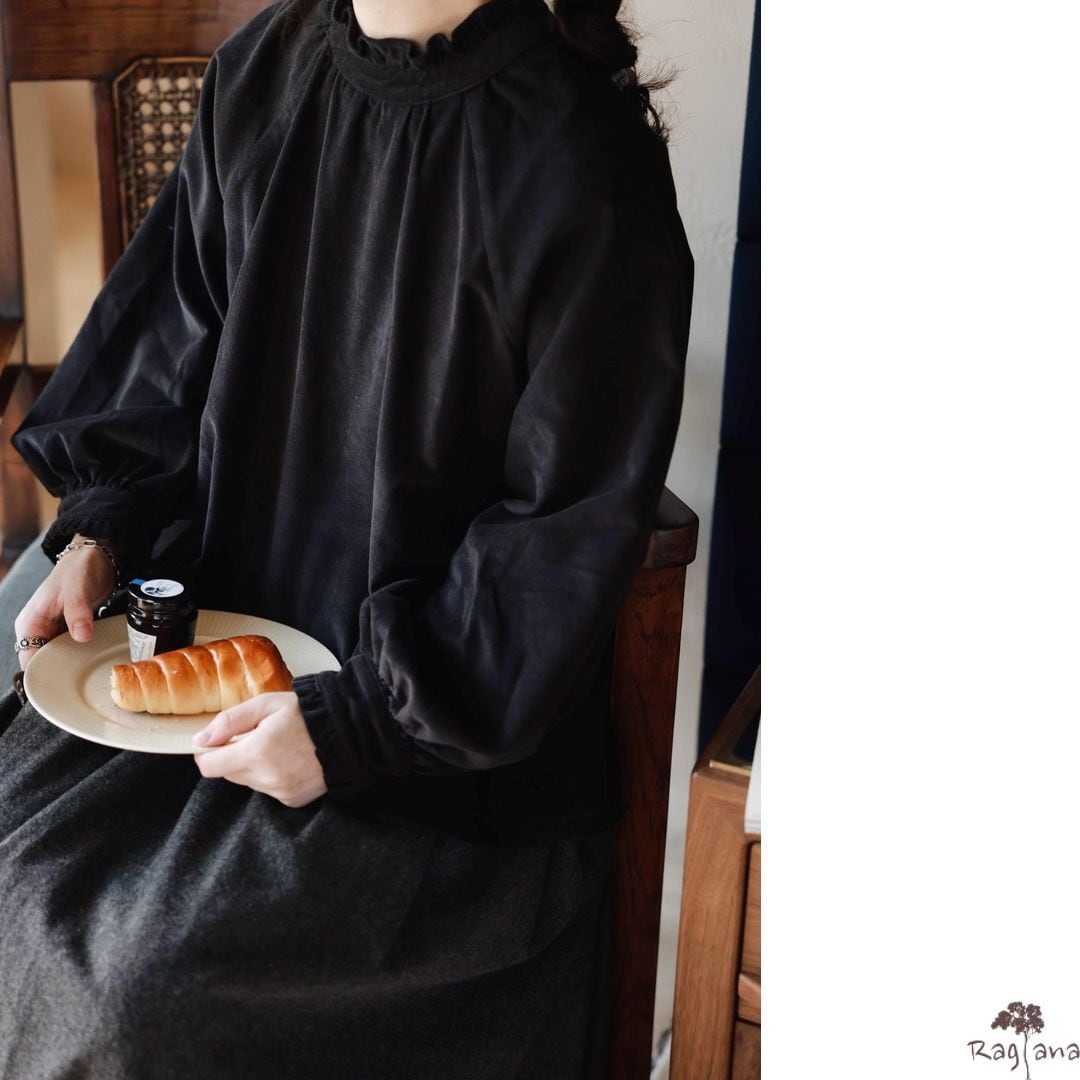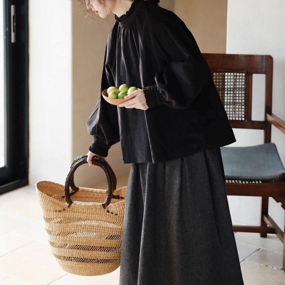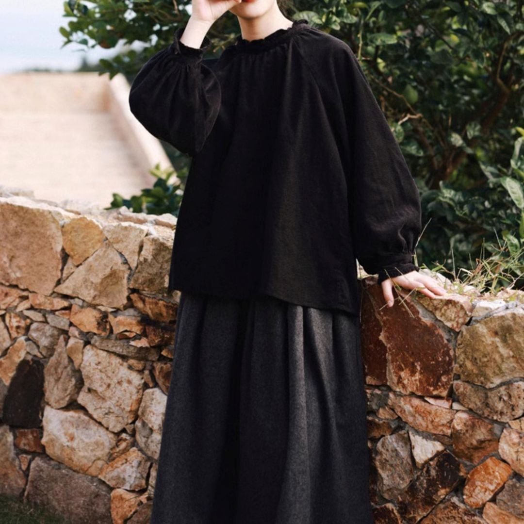 ギャザーフリルの襟がとっても魅力的なルーズフィットブラウス。