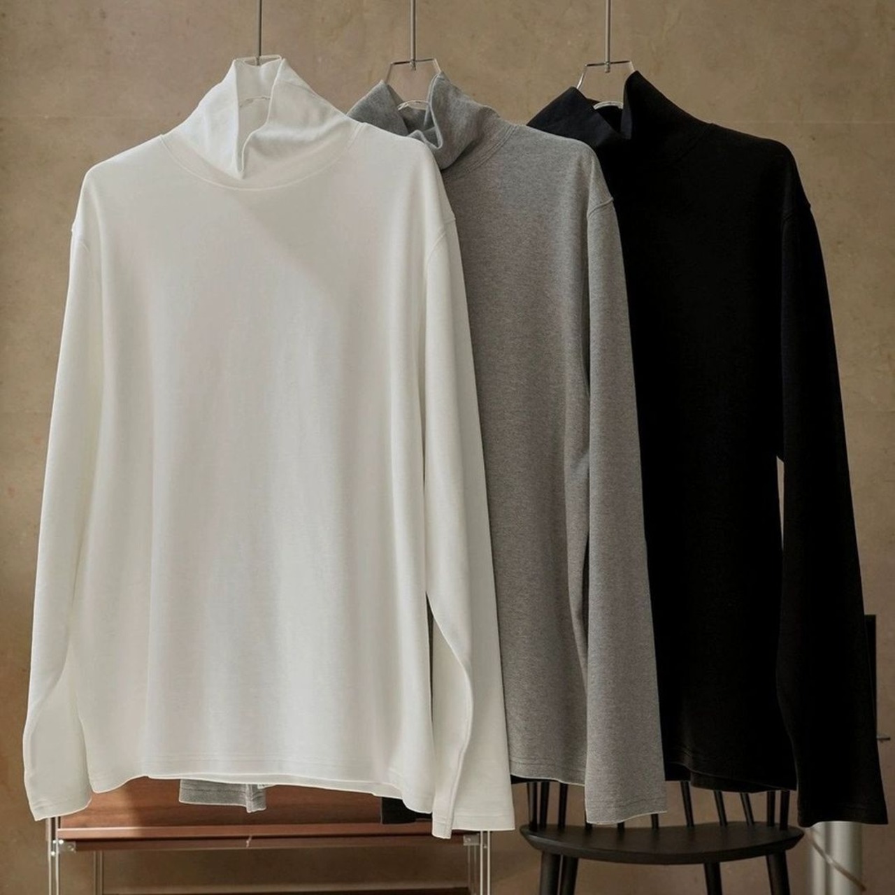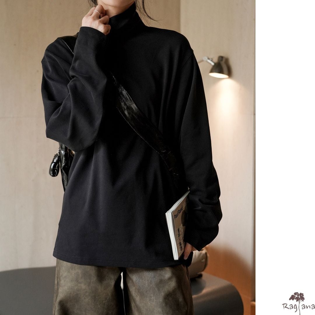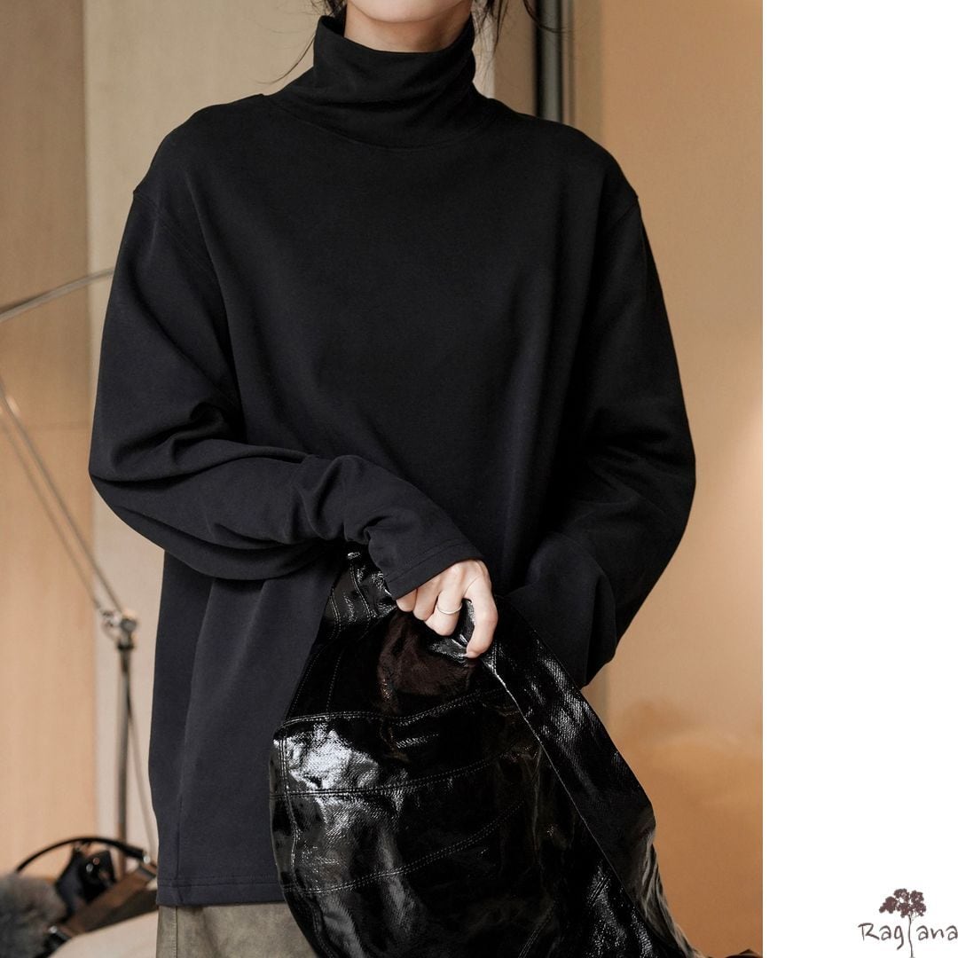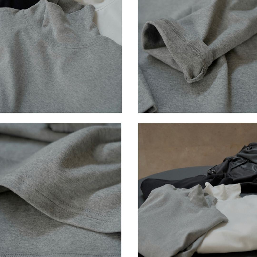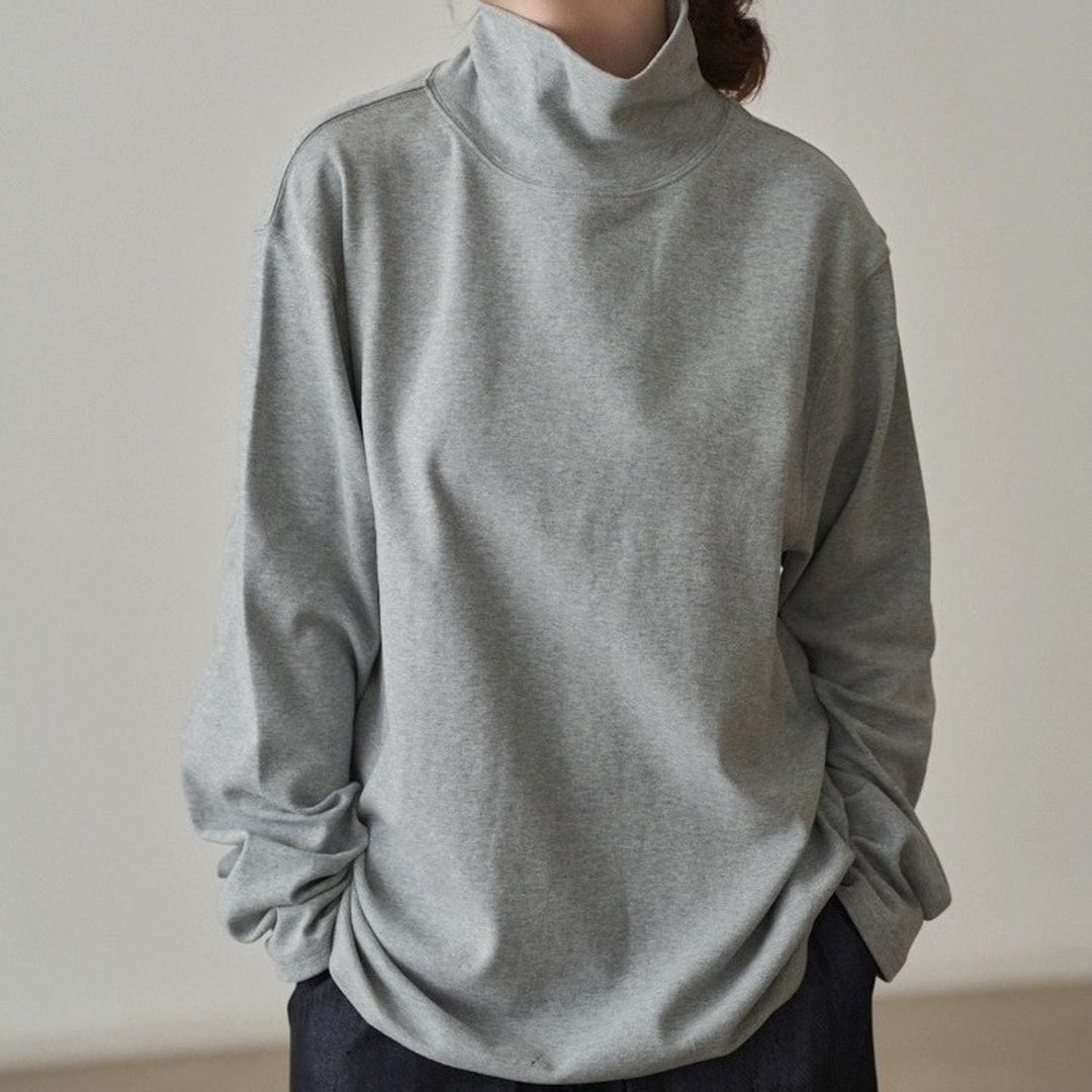 ミニマルなハイネックのトップス。