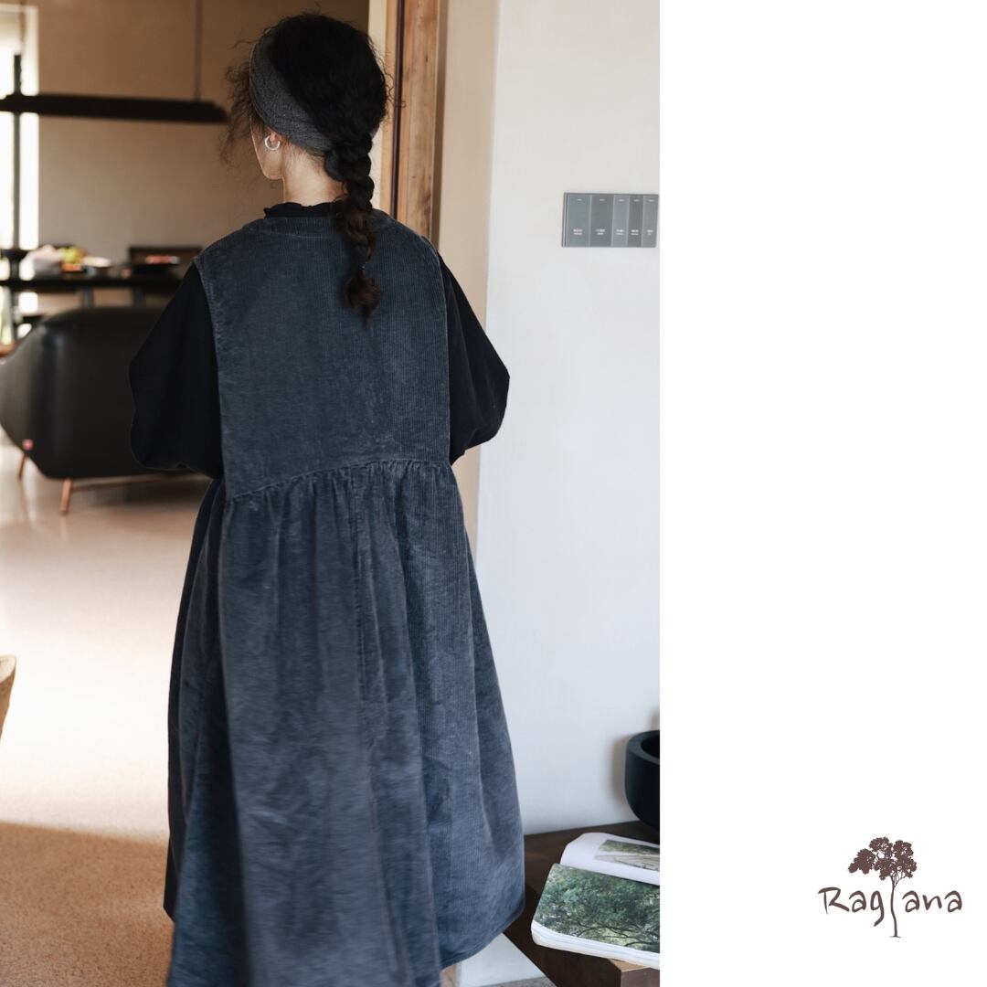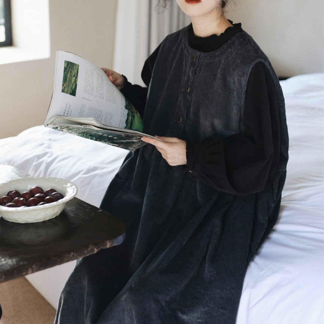 このノースリーブワンピースは、暖かみのあるコーデュロイ素材を使用した、豪華で洗練されたデザインです。