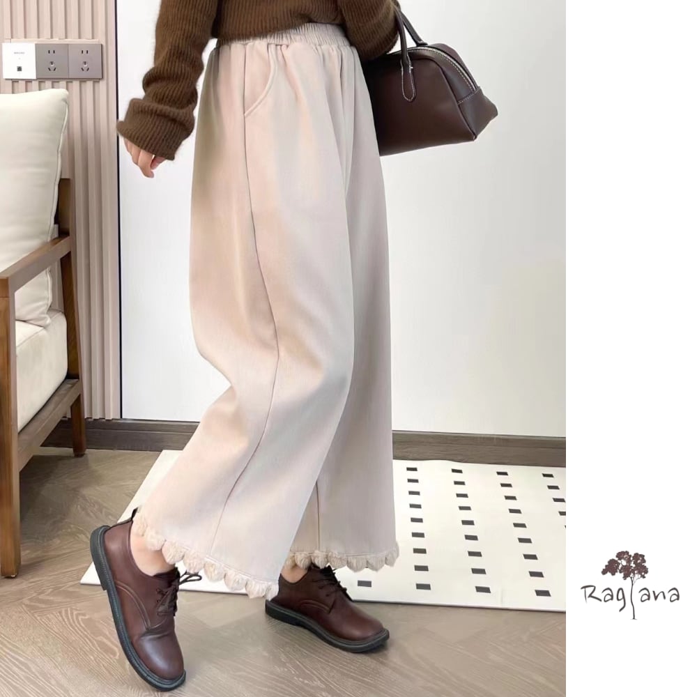 あったかな裏起毛素材で、冬のおしゃれを快適に楽しめるファーワイドパンツ。足元からポカポカ温かさが広がり、寒い日もおしゃれを楽しむことができます。