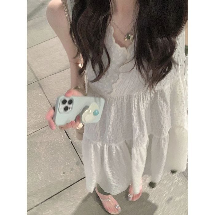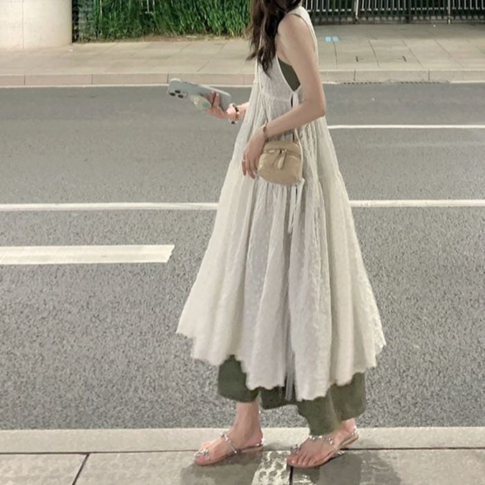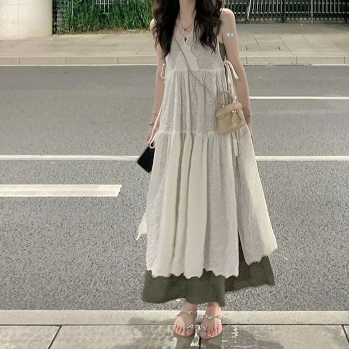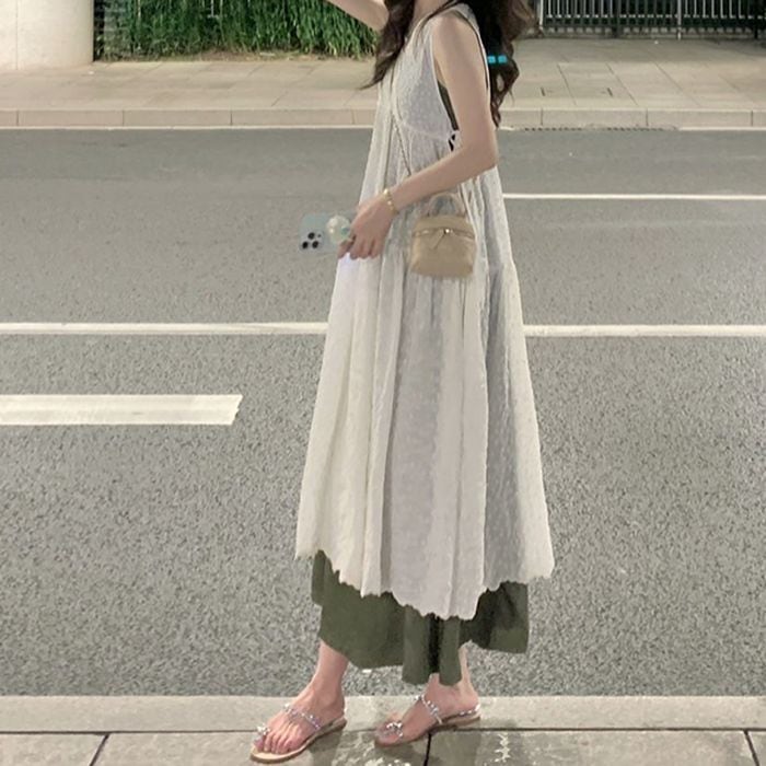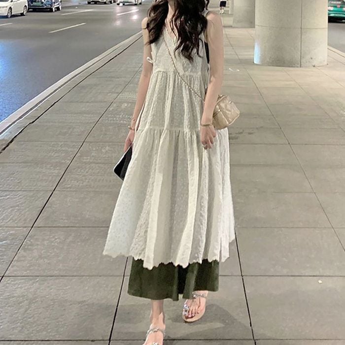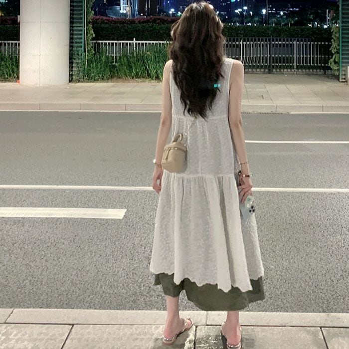 総刺繍生地のノースリーブのドッキングワンピース。