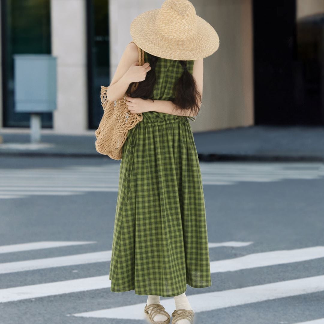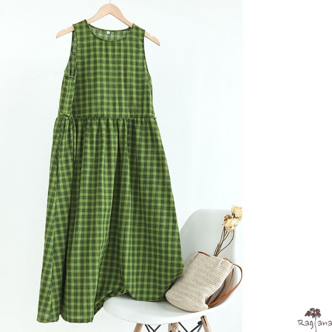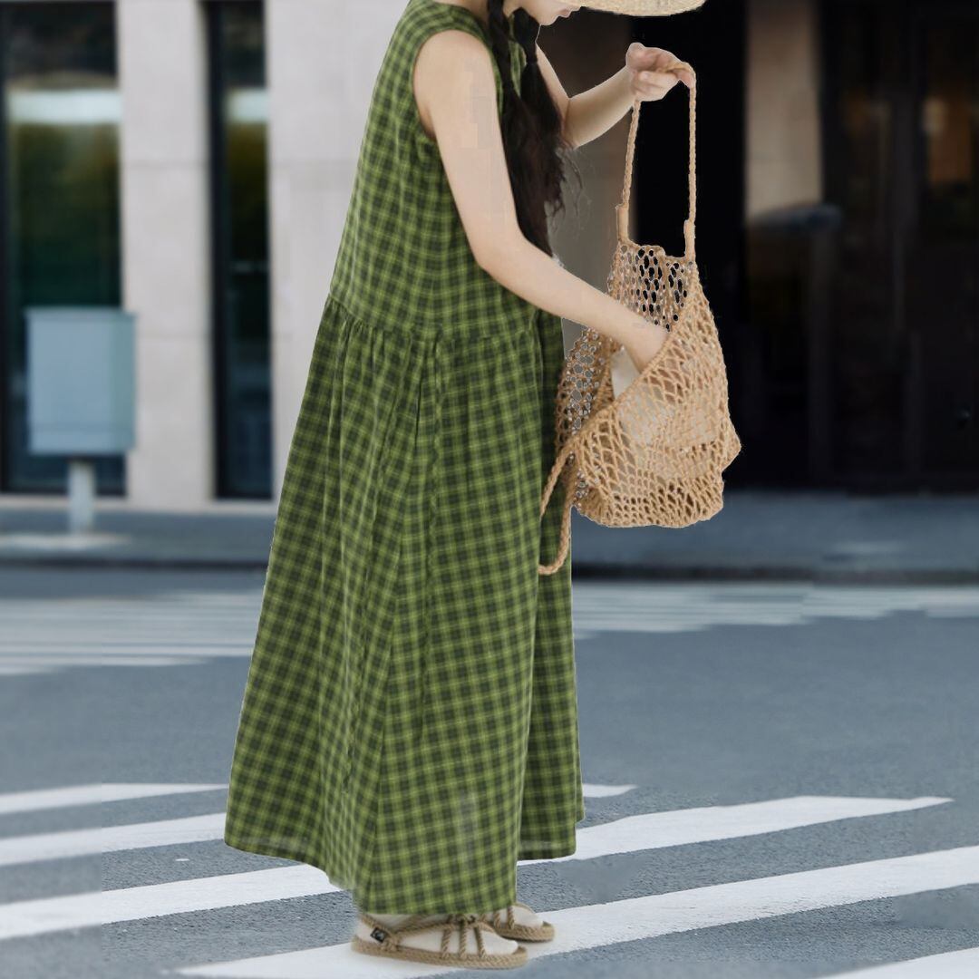 チェック柄 ノースリーブワンピース M 10602